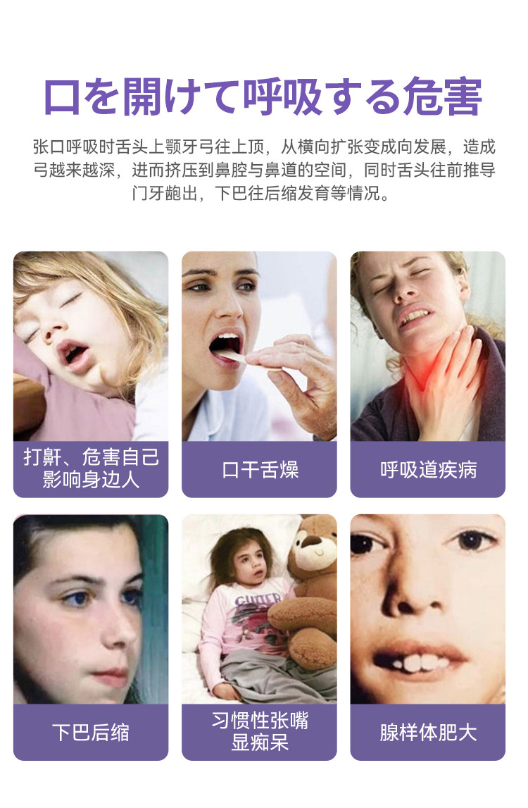 Дети и взрослые имеют закрытые дыхательные пятна и устройство для коррекции для дыхания для сна и хранить коррекционные пятна, чтобы предотвратить выпуклость во рту