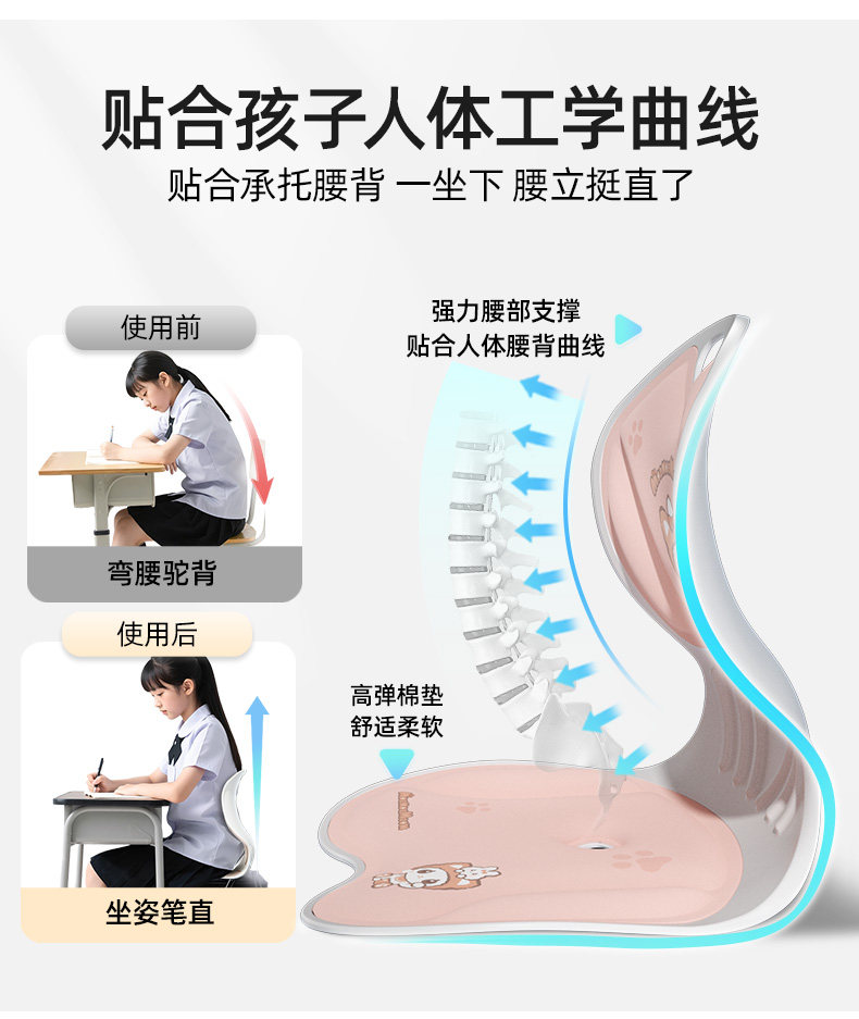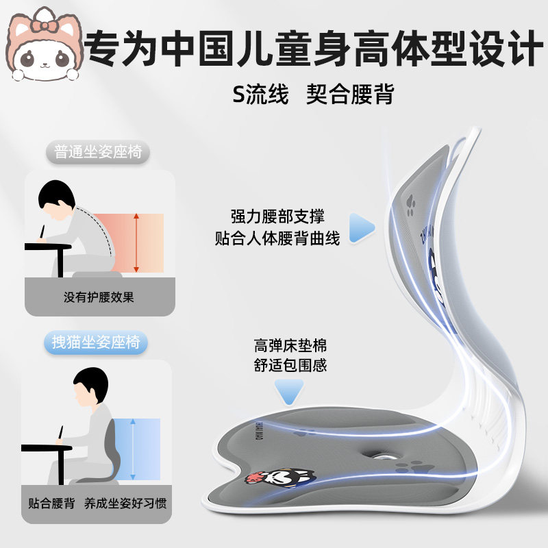 Mengmeng Meow Детская защита талии подушка подушка подушка Spine Anti-Hunchback Artifact Special Correction Spect для начальной школы для средней школы для средней школы в начальной школе