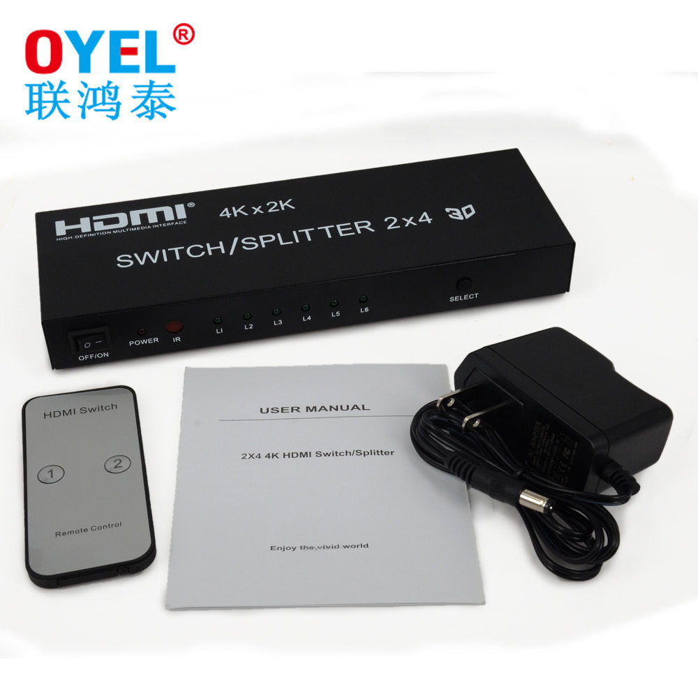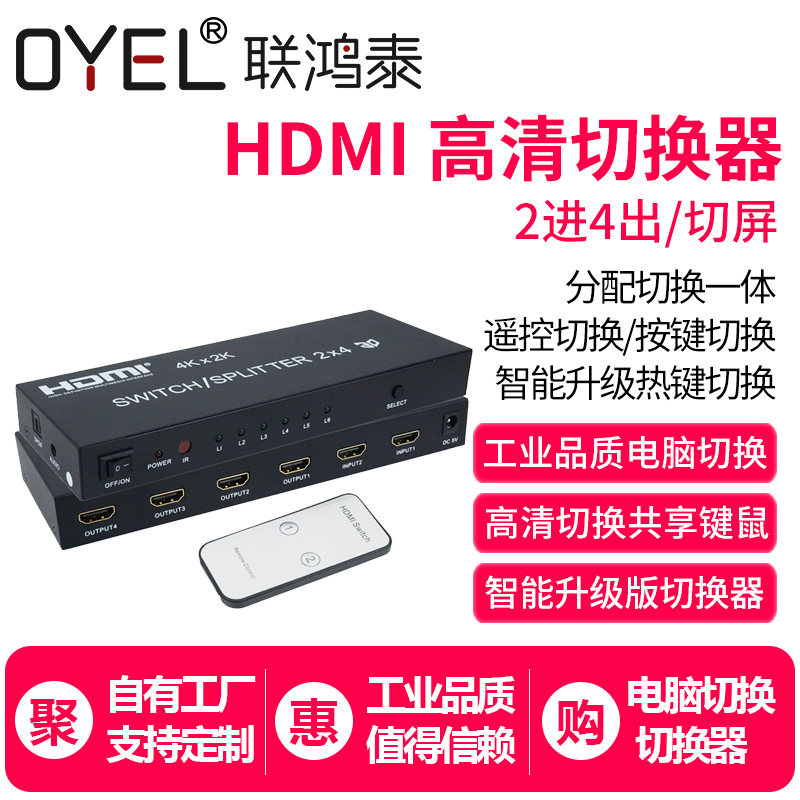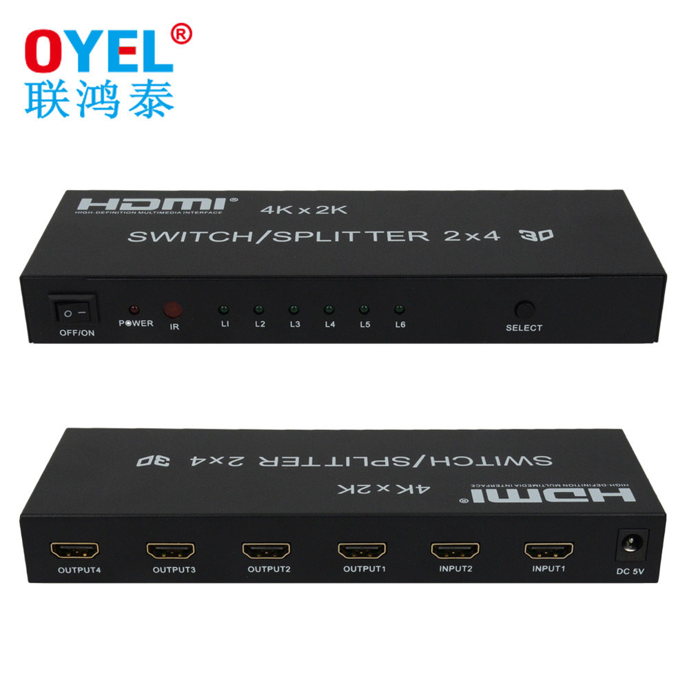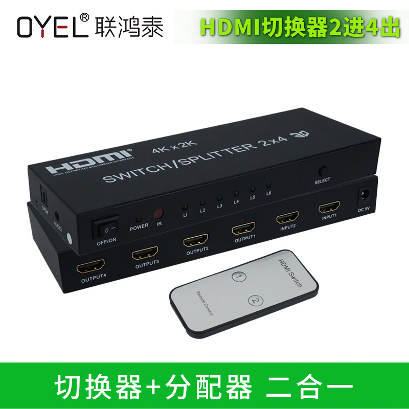HDMI Switch 2 в 4 OUT 4 Computer Display HD -образец монитор Audio Splitter с удаленным управлением
