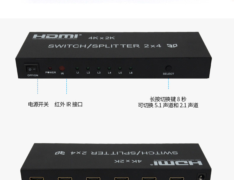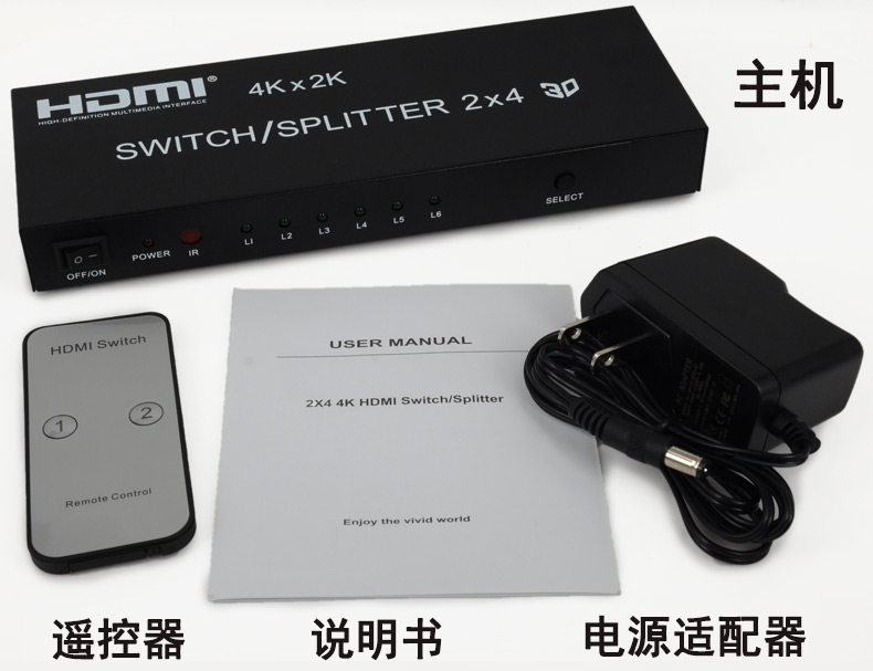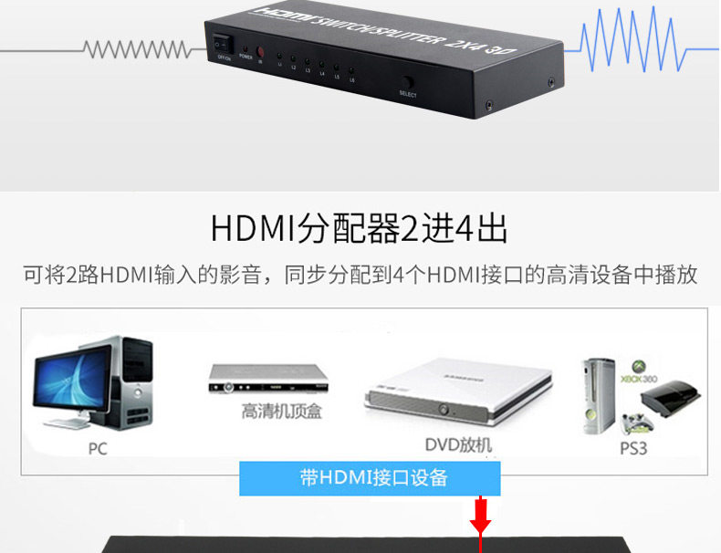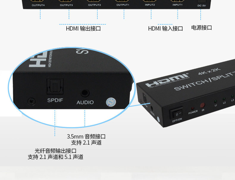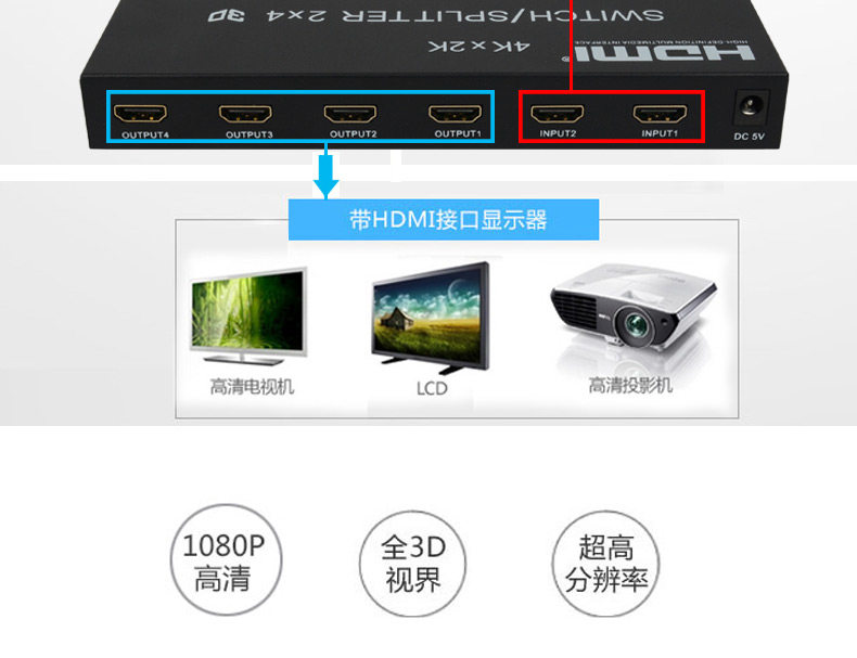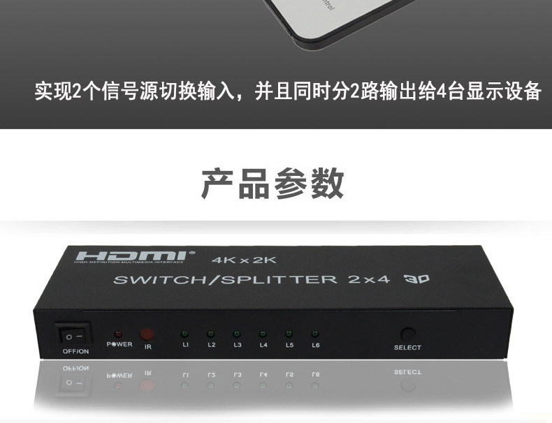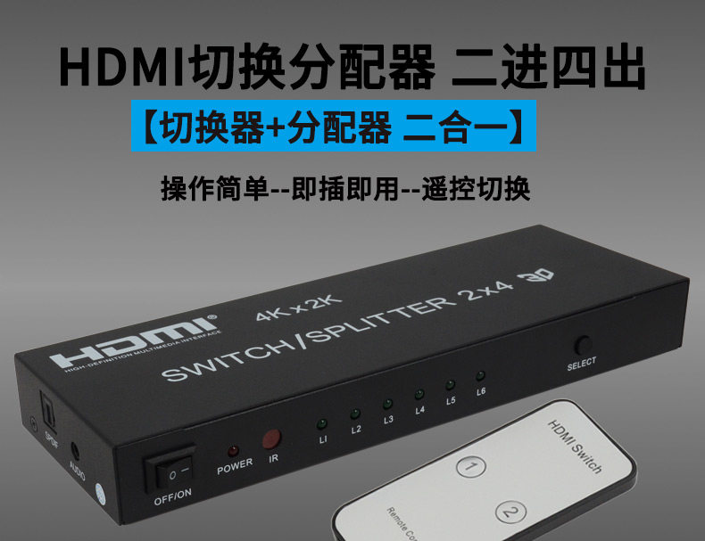 HDMI Switch 2 в 4 OUT 4 Computer Display HD -образец монитор Audio Splitter с удаленным управлением