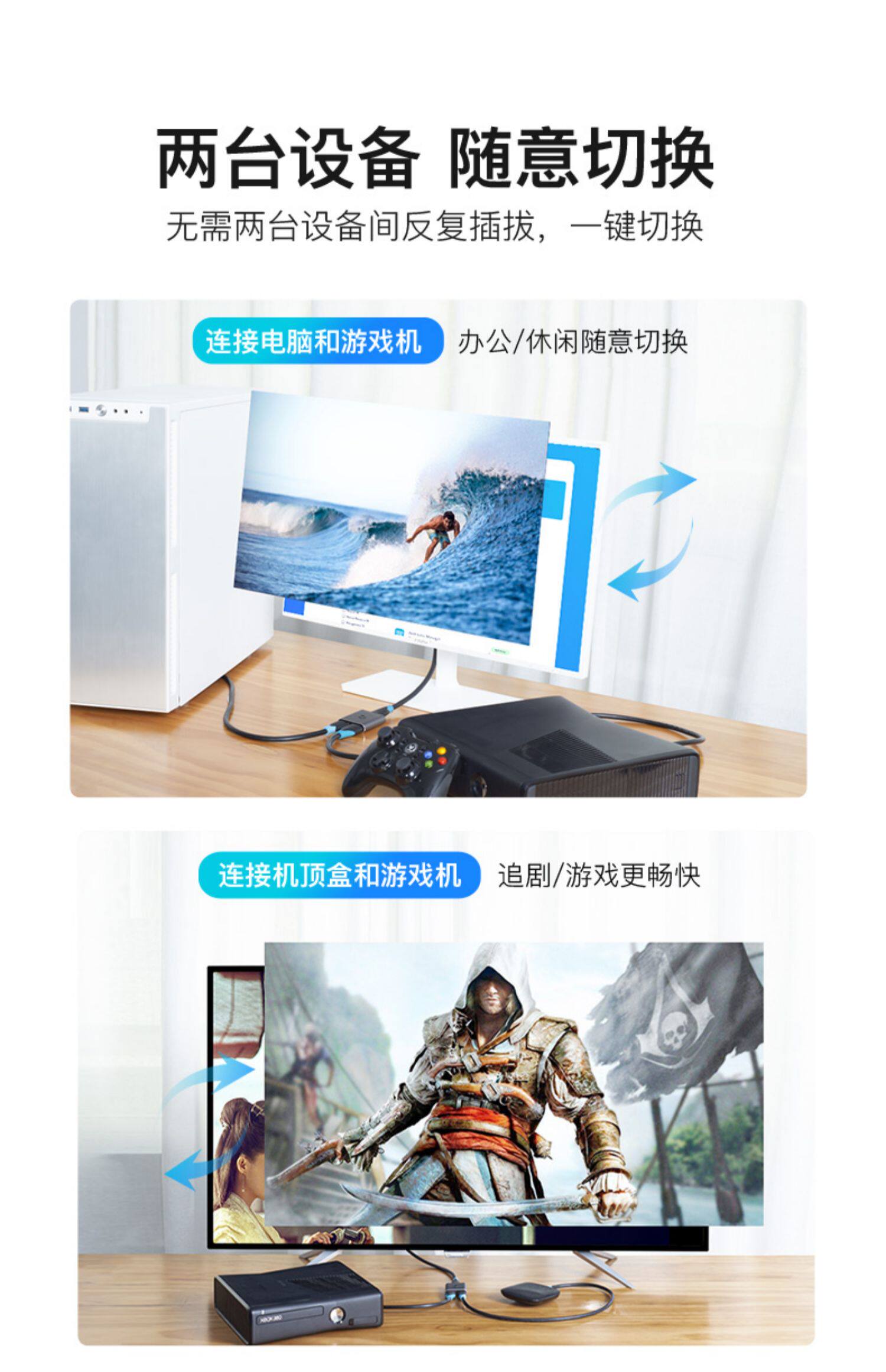 Переключатель HDMI, один на два, кабель высокой четкости 4K, два входа и один выход, телевизор, два входа и один монитор, телеприставка, один на два