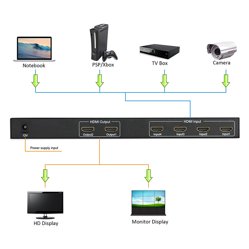HDMI4 Inlet 2 Matrix Remote Crower 4KX2K 3840*2160 Матричный переключатель4x2 Функция CEC Функция