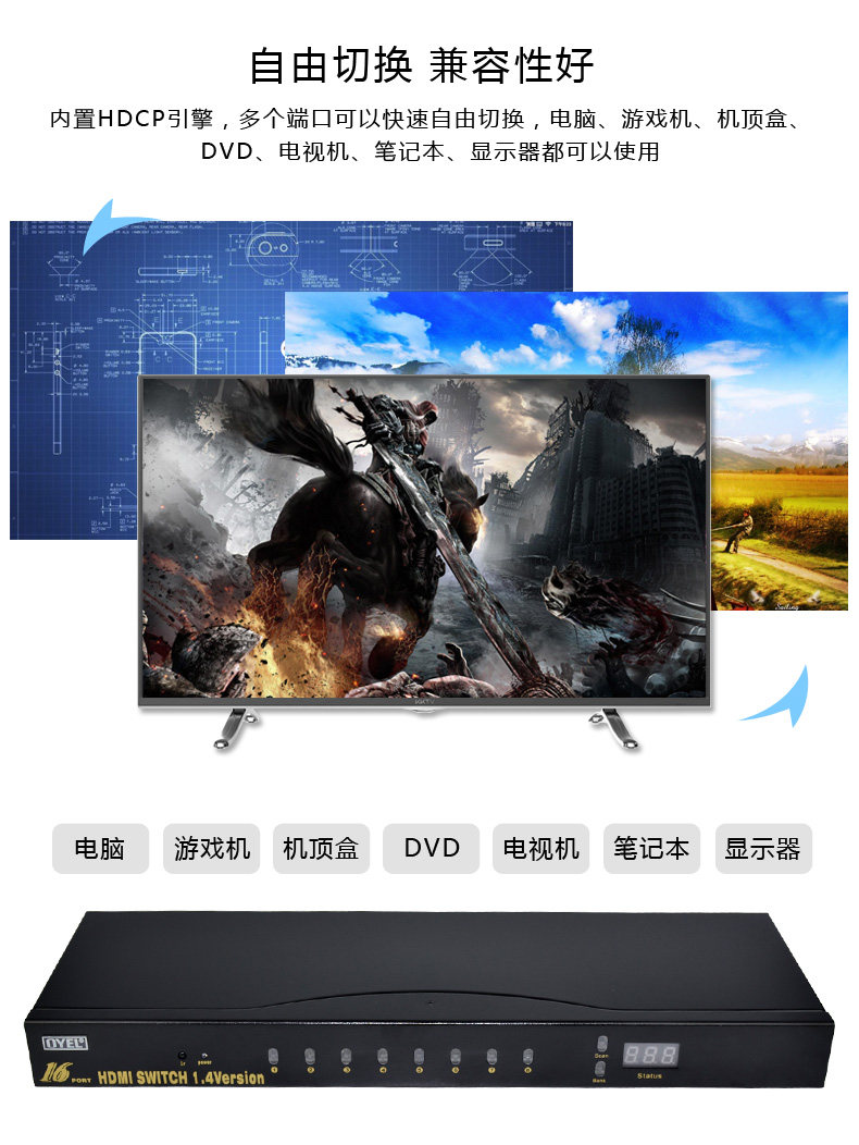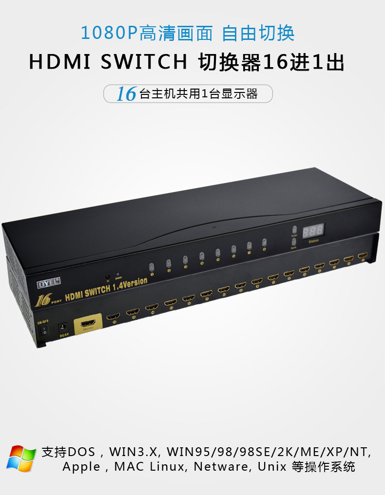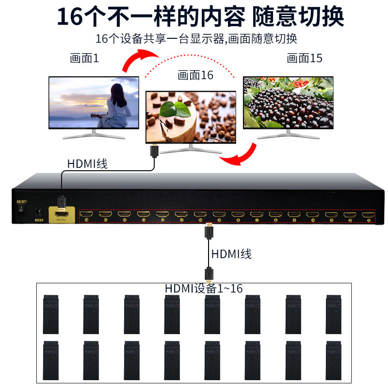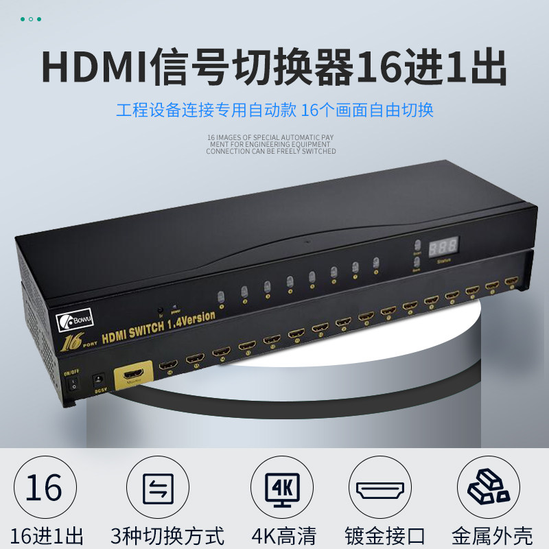 BOWU HDMI16 Переключатель порта переключатель порта16 Интеллектуальная дистрибьютор -дистрибьютор интеллектуального дистрибьютора Устройство дистанционного управления