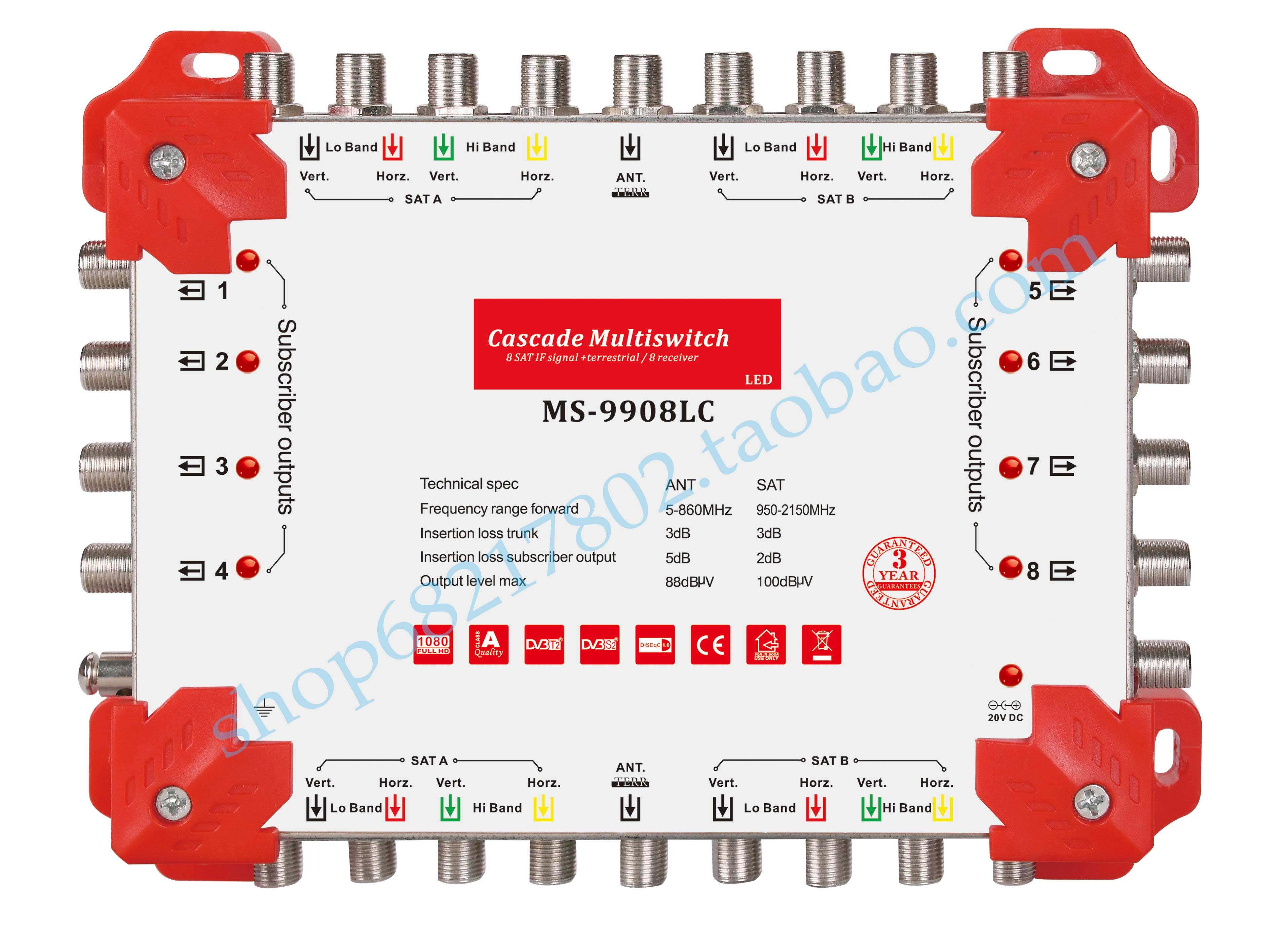Каскадный спутниковый многоканальный переключатель на 9 входов и 8 выходов Переключатель спутникового телевидения со светодиодной подсветкой и блоком питания
