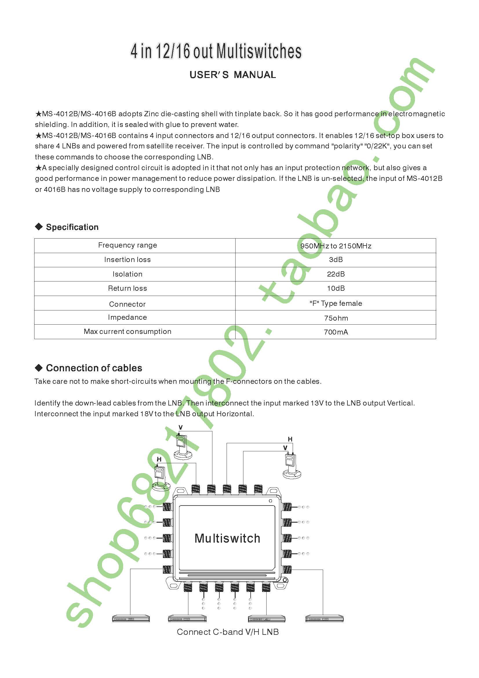 Четыре -дюймовые спутниковые мульти -транспортные переключатели 4 входных и 12 выключателей для выключателя телевизора судов MultiSwitch