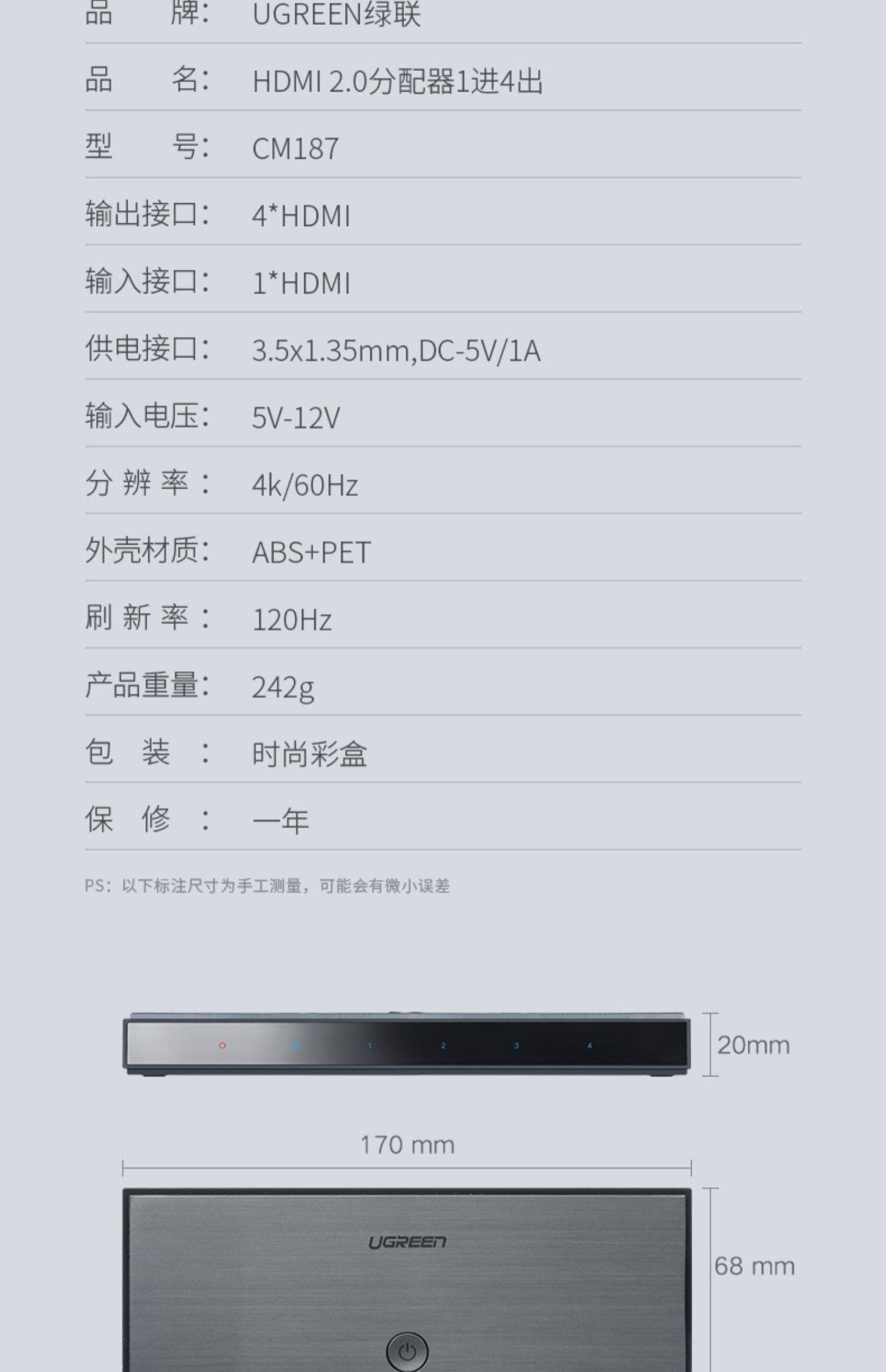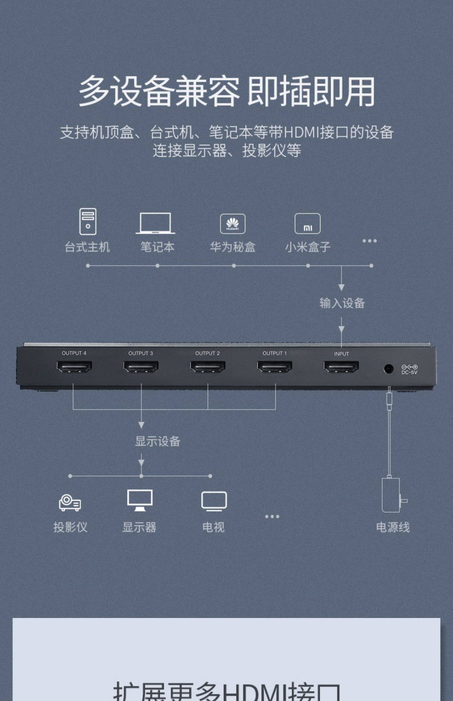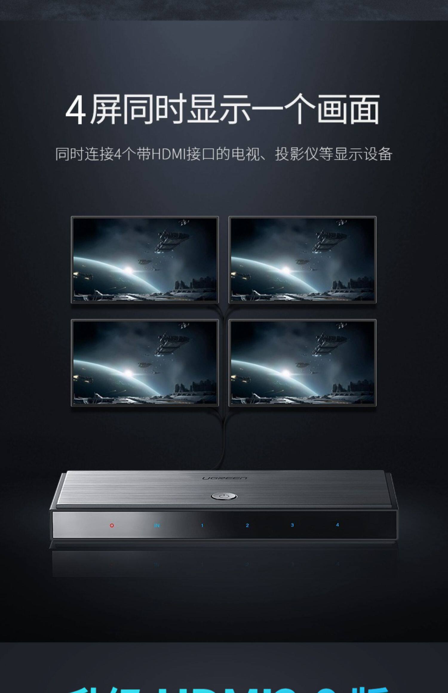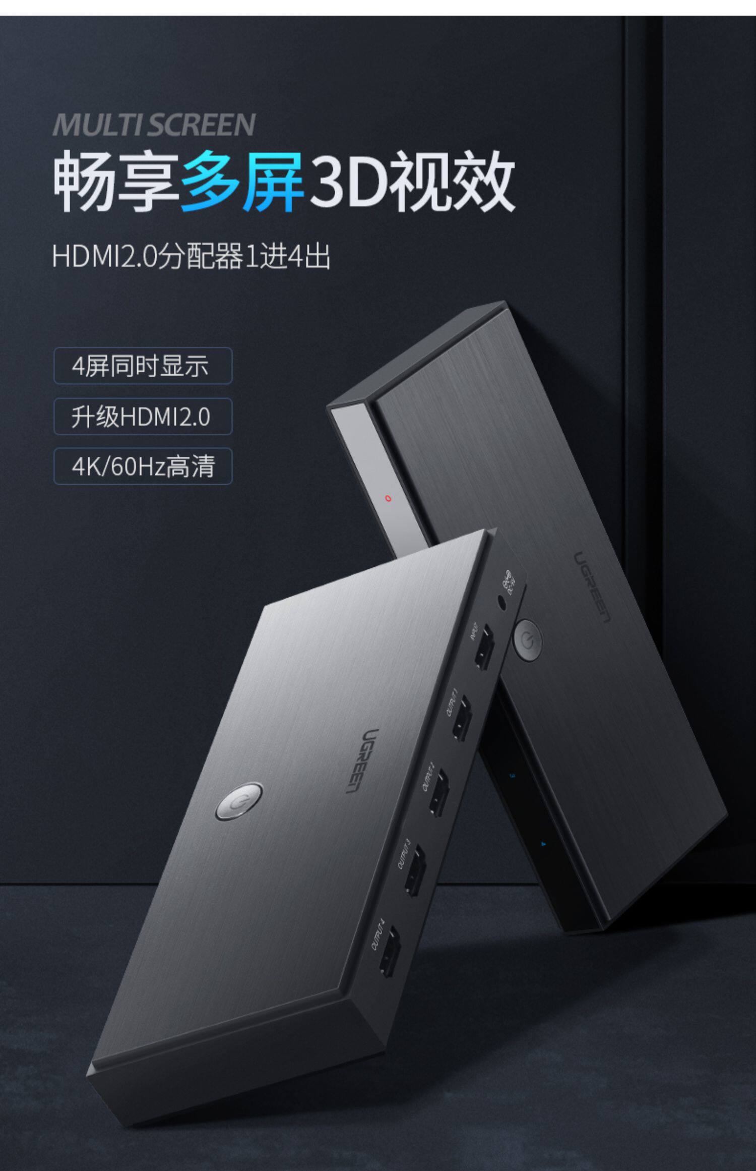 绿联 Дистрибьютор HDMI, один перетаскивание 4, 1 точка 4, с аудио 3D -проектором 4K High -DEFINITION TV Book SET -TOP Box, один в 2,0 версии 2,0 -экранного дисплея Computer Multi -Screen Extension