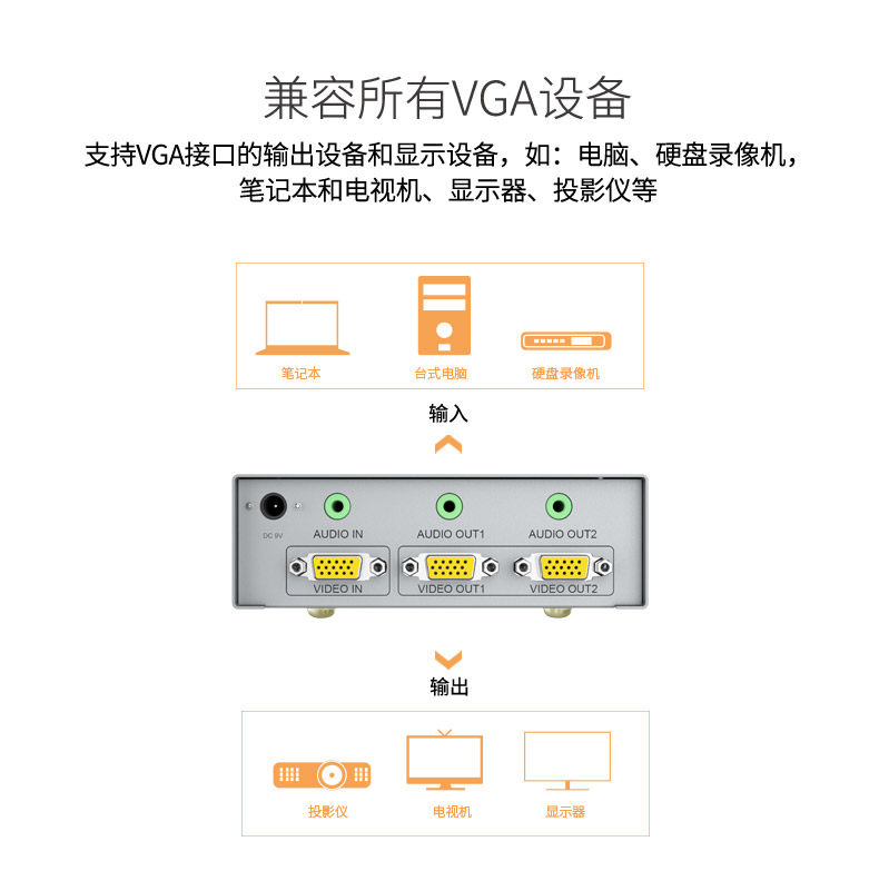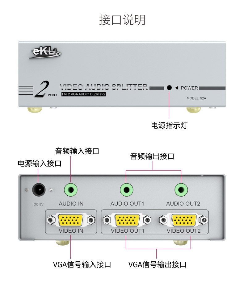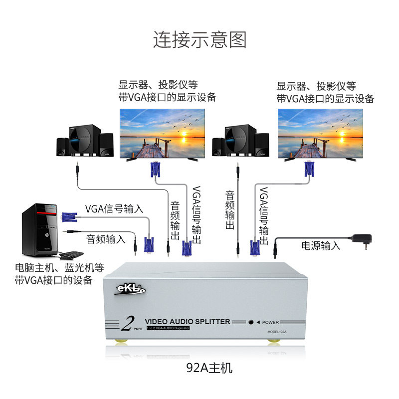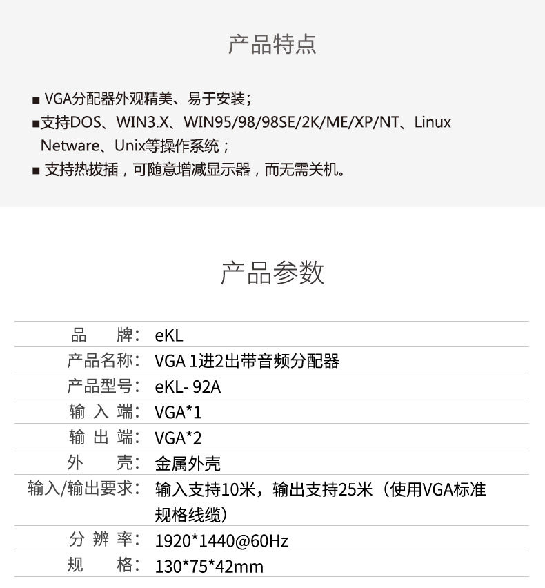 EKL VGA Audio Allocation Device VGA One Point Two Высокоэффективная видео Divisor 1 Point 2, одна из двух выключенных дивизоров
