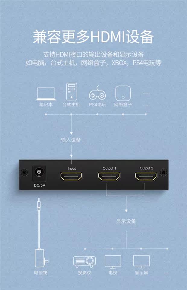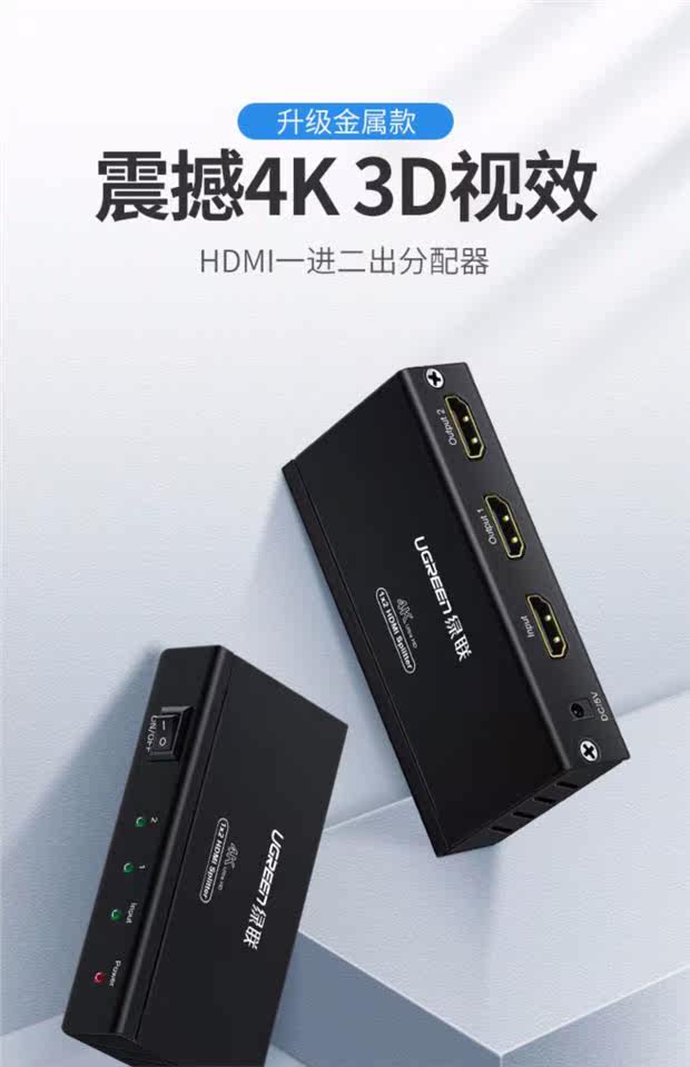 Green Union HDMI Distributor One -Point Dupletor 1 -in -2 Видео 3D -проектор 4K HD Сначала перетаскивание двух компьютеров