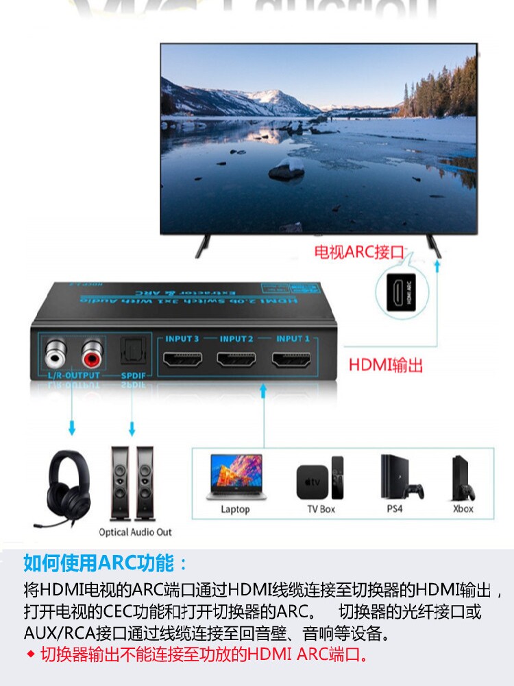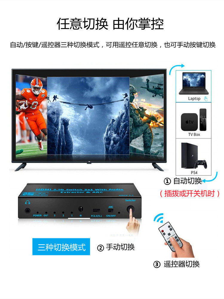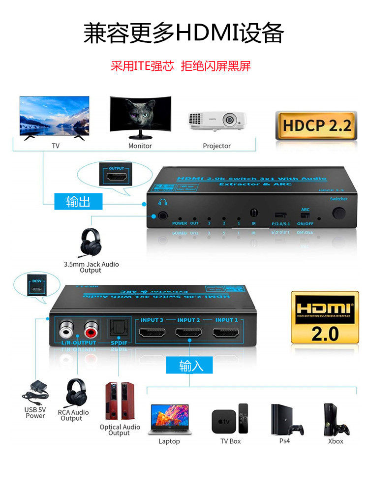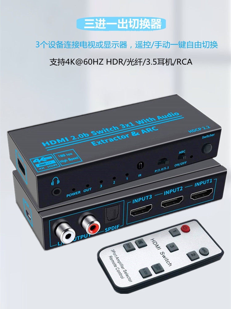 HDMI SDATICE SDATICE THERINGING THERI -IN -OUT -OUT TV SCEERN HD 4K Дисплей Divise 3.5 Оптическое волокно дуг