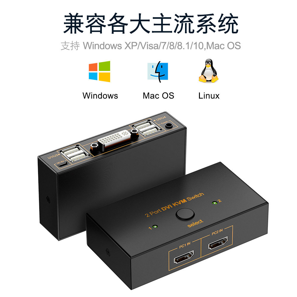 2 Порт KVM Переключение Multi -Port в сочетании с парой компьютерных хостов, чтобы поделиться коммутатором DVI Printer Printer Keyboard и т. Д.