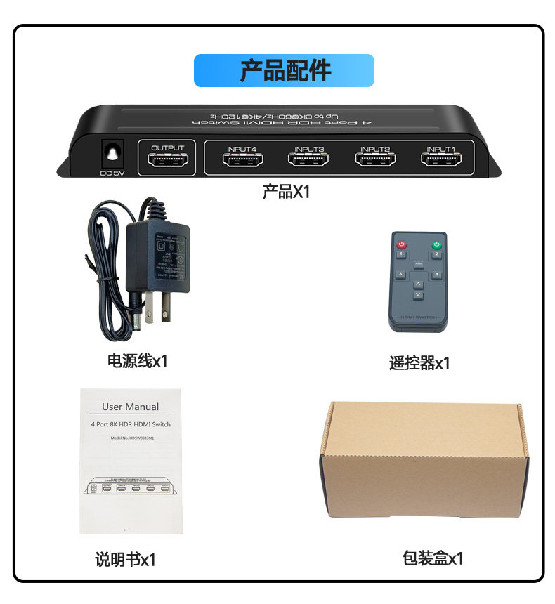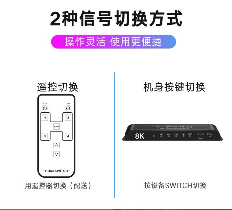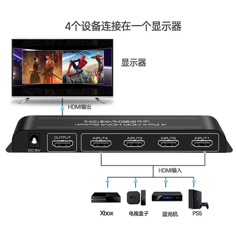 2.1 Версия HDMI Switch 4 в 1 OUT 8K60HZ/4K120HZ HD Поддержка Dolby Vision HDR Panorama