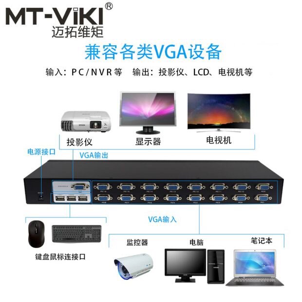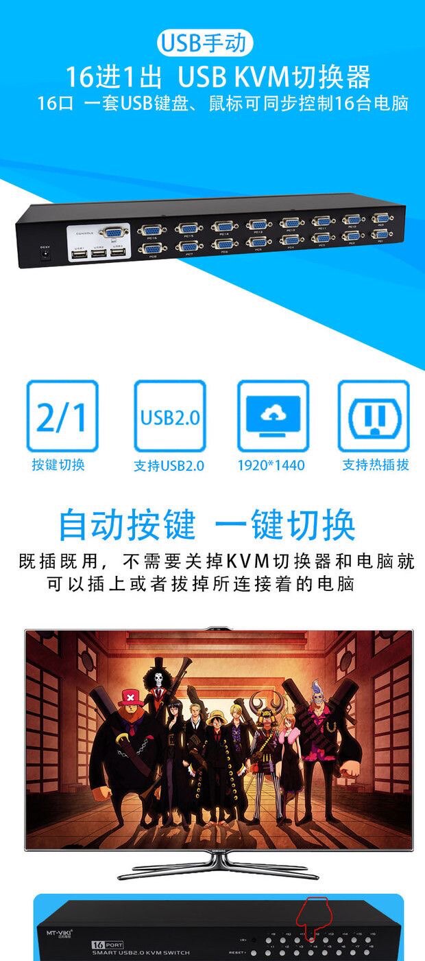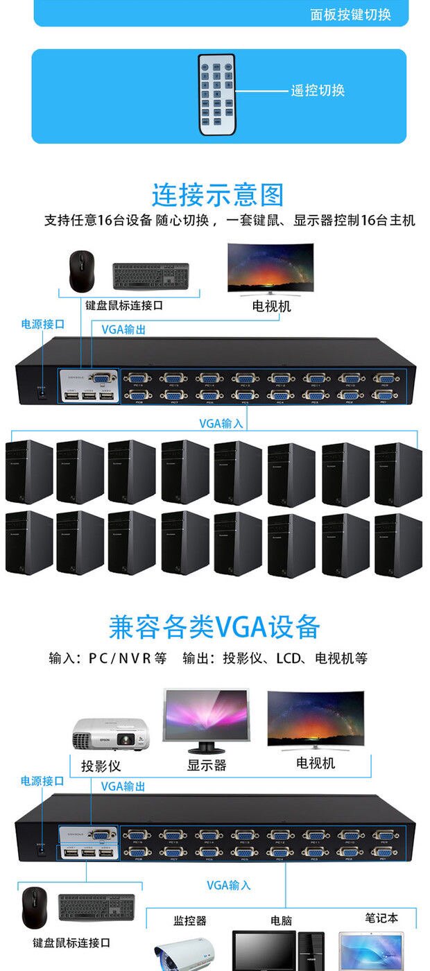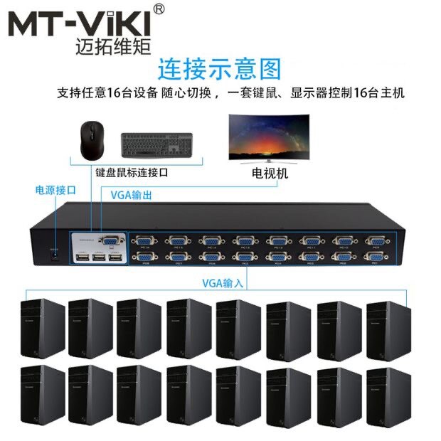VGA KVM-переключатель 16-портовой клавиши дисплея и мышь общего экрана экрана.
