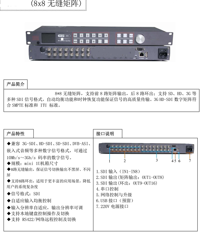 Ке Qiqi 3G-SDI Бесплатная Матрица 8-в-8 бесшовного матричного переключателя HD-SDI восемь в восемь