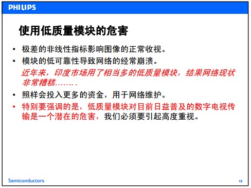 Выше приведено сравнительный анализ оригинальных импортных модулей Philips и отечественных модулей. Мастерство внутренних модулей (припаяные суставы, производственные процессы, чипы и т. Д.), Производительность (нелинейные показатели искажения, власть и т. Д.) И надежность более импортированы, чем первоначальный импортный импорт. Модуль плохой.Чтобы обеспечить эффект передачи сигнала телевизора, радио и телевизионная система использует оригинальный модуль импорта.