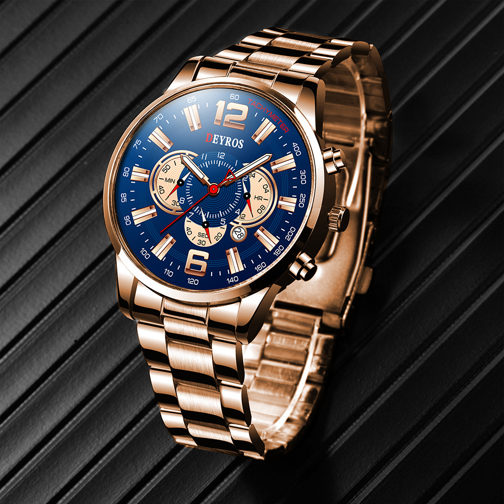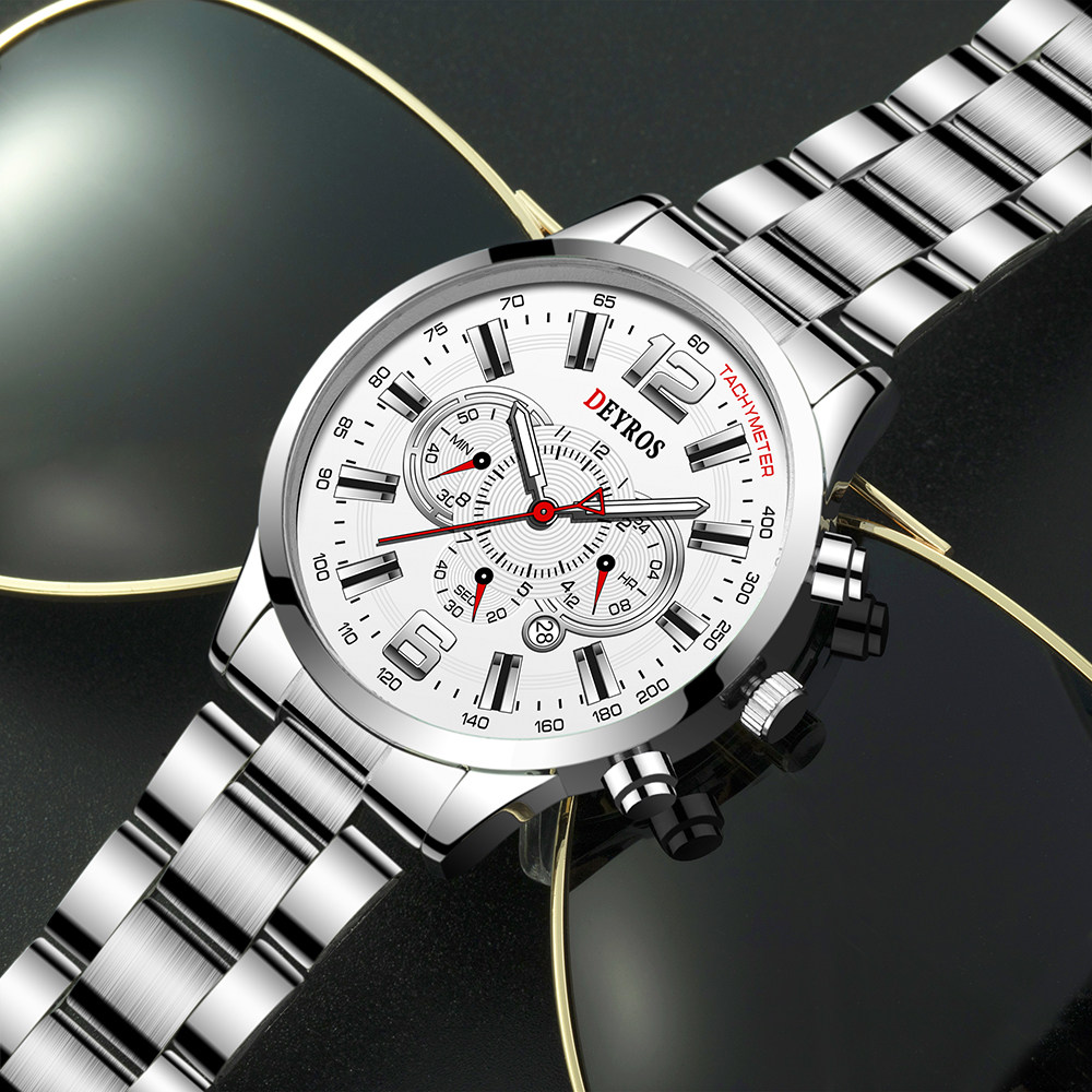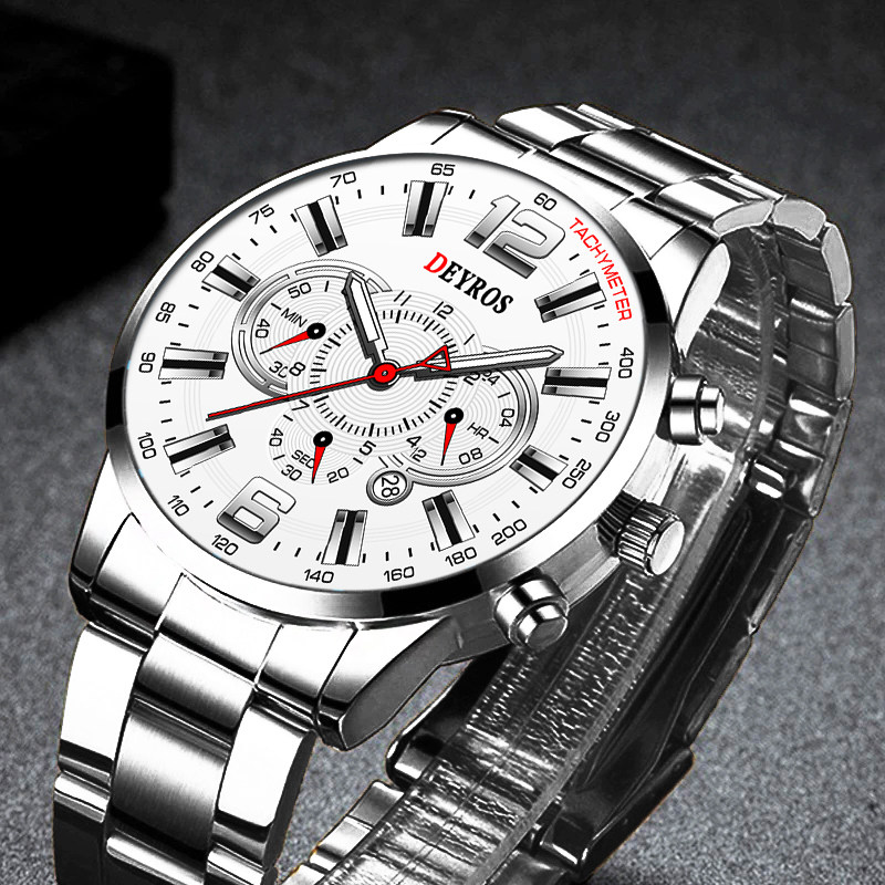 Модные мужские спортивные часы мужчин из нержавеющей стали кварцевого запястья