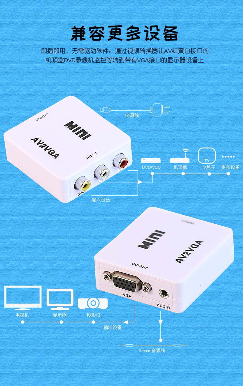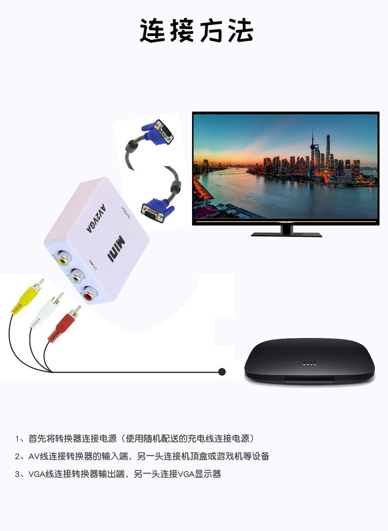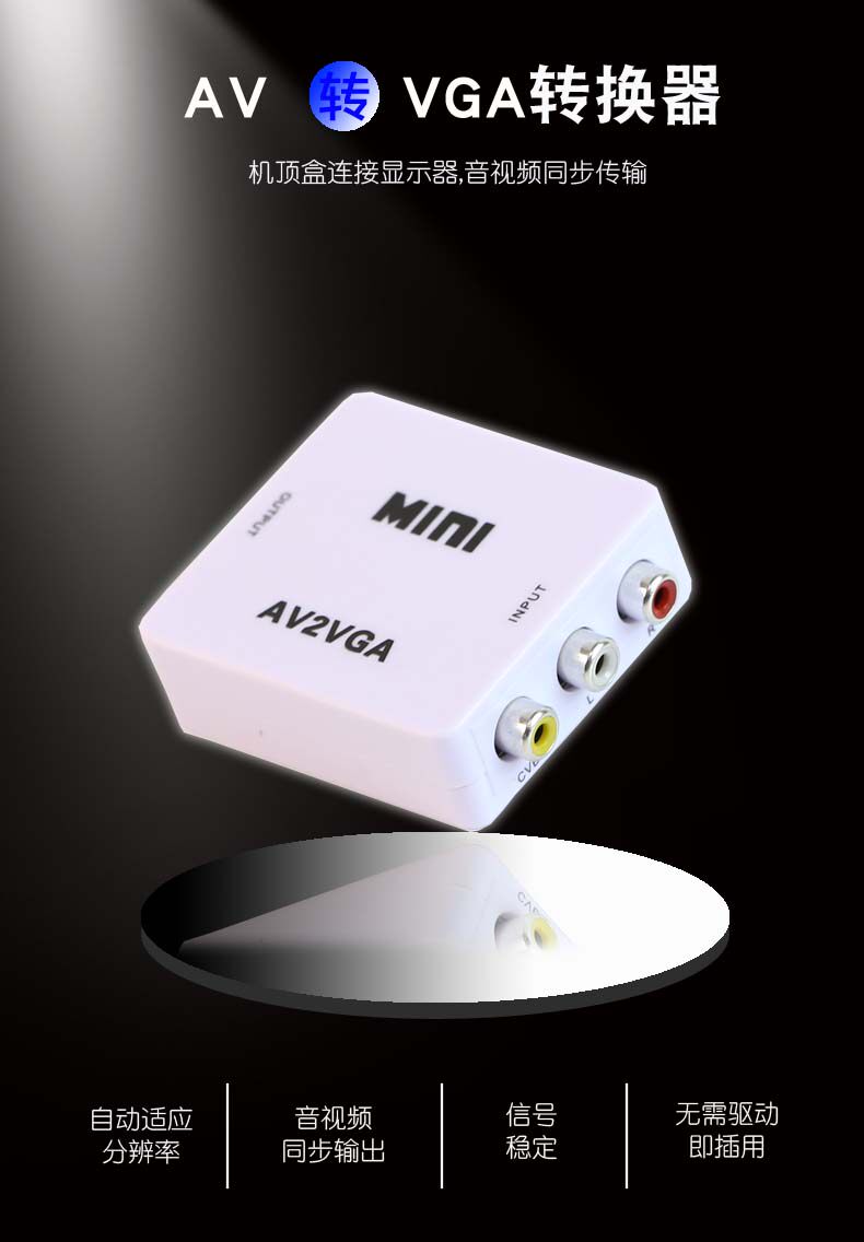 AV в VGA SET -TOP BOX DISPLAY PROCETOR Просмотр машины для видеоигр DVD -камера Аудио видео преобразование видео