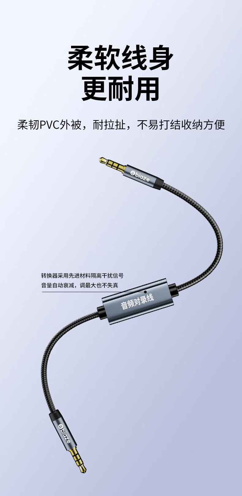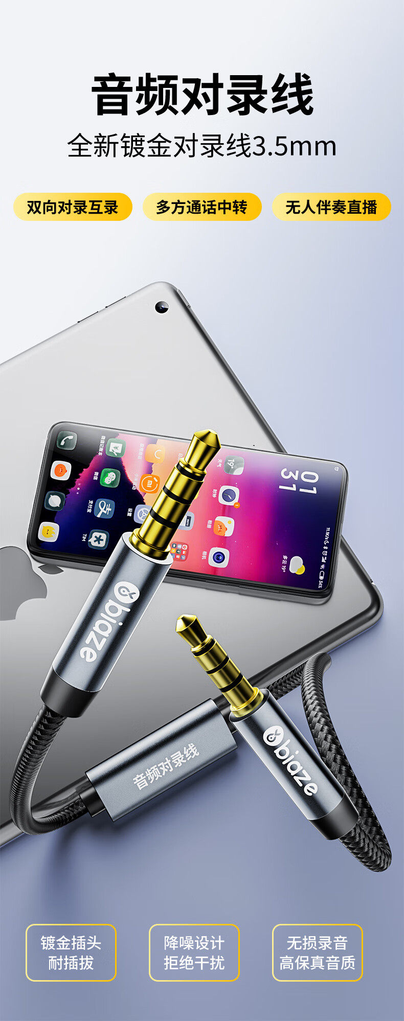 Кабель для записи Biaz «папа-папа» диаметром 3,5 мм, аудиокабель для мобильной прямой трансляции, двусторонний кабель для внутренней записи и записи, 4-секционный двусторонний разъем для компьютерного микрофона, звуковая карта, кабель для караоке-аккомпанемента
