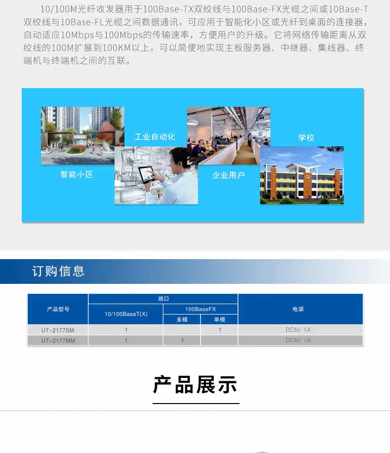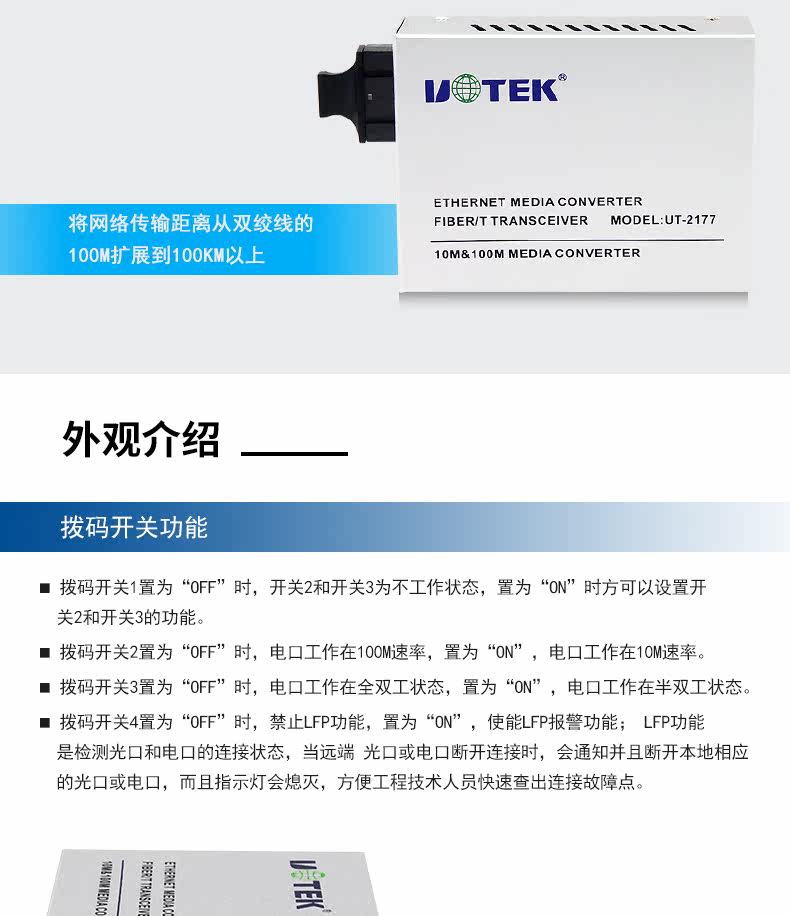 Yutai UT-2177SM 10/100M СЕТИРОВАННЫЙ ОПТИЧЕСКОЙ ПРИСПЕРТИВЕР 20 КМ ST/SC/FC CONVERTER