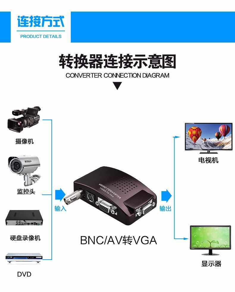 Функция: сигнал терминала/VGA BNC/S может быть перенесен на выход сигнала VGA, то есть VGA, BNC или S -END -END -END, VGA OUT, он может легко подключиться к камере/мониторинге/жесткий диск Запись и другие устройства источника сигнала, позволяющие вашему дисплею, проекции, проекции, проекционные телевизоры с интерфейсами VGA и т. Д., Также может наблюдать за мониторингом (сам преобразователь не предоставляет источники сигнала, а только воспроизводит эффект преобразования). Приложение продукта: BNC к VGA -это неразрушающий видеообразователь. На заднем дисплее, тем самым показывая изображение.Этот продукт заменяет традиционный монитор CRT с небольшим размером, четким качеством изображения, подключением, воспроизведением, простым и удобным.Яркость VGA, контрастность, четкость, регулировка разрешения, 800x600 800x600,1024x768,120x1024,1440x900, 1680x1050, 1920x1080, 1920x1200