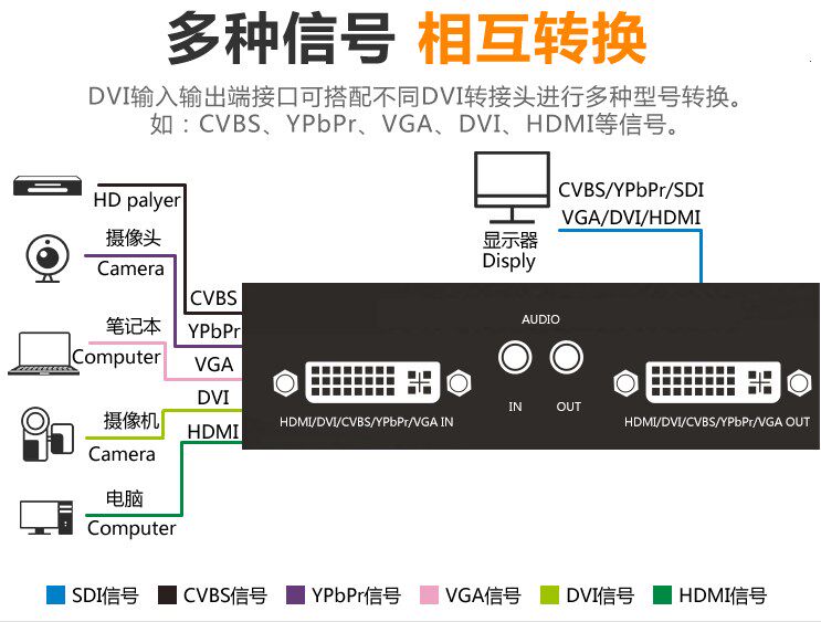 DVI HDMI Inverter 1080p до 1080i CVBS/DVI/VGA/YPBPR Процент преобразователя