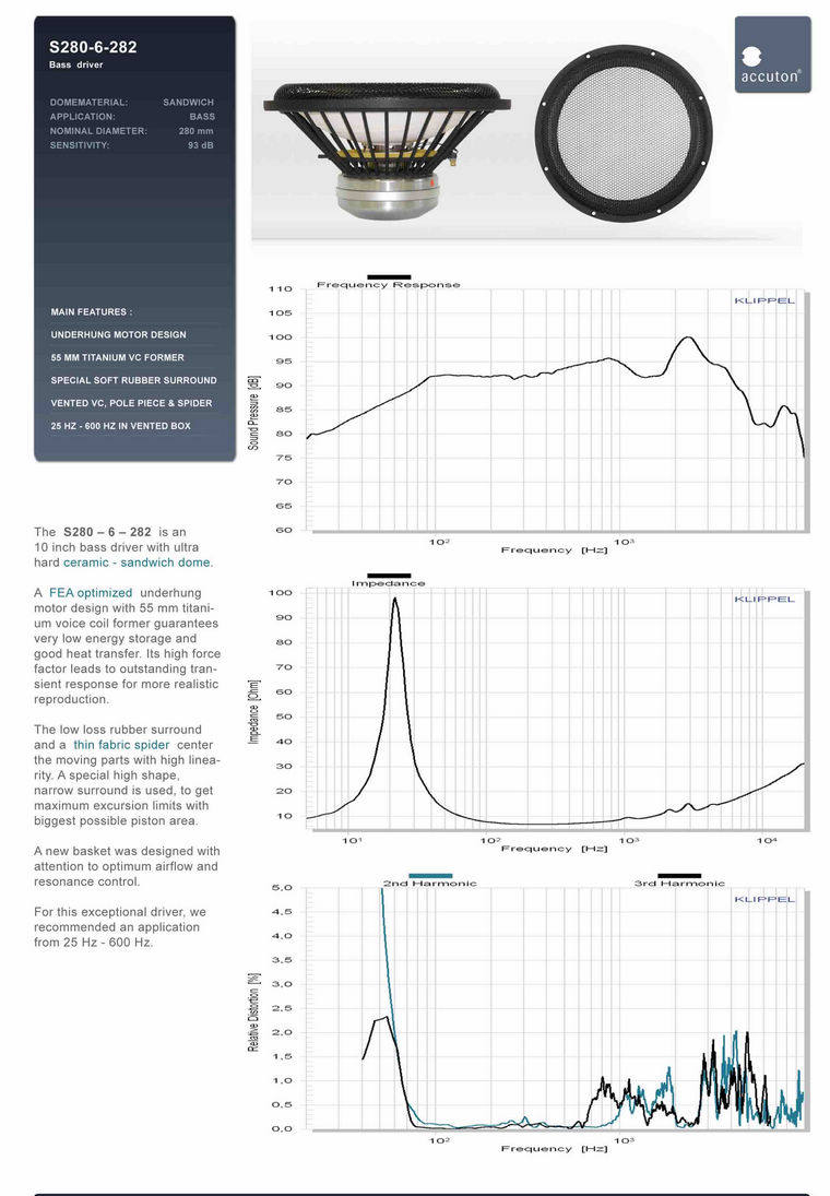 VB: 54L; Размер диаметра рта: 70 мм, длина: 170 мм, FRES: 31 Гц, если F-3DB: 39 Гц, Q: 0,61 (0,7-точечная оболочка ripple при 50 Гц)