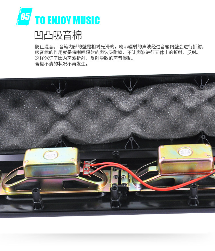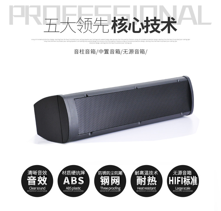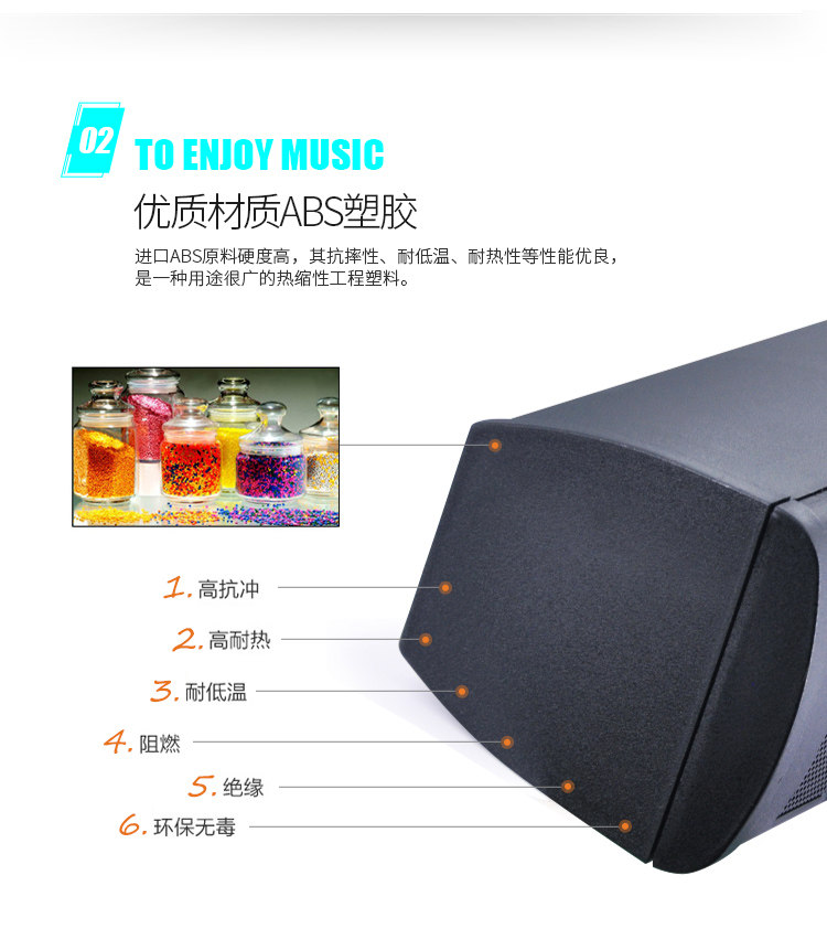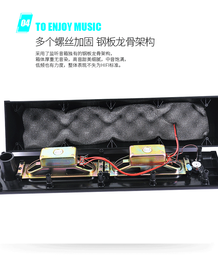Оболочка динамика изготовлена из ABS -качественного материала, который имеет большое количество подкреплений внутри, и принимает уникальную архитектуру стального кератона с мониторингом динамиков.