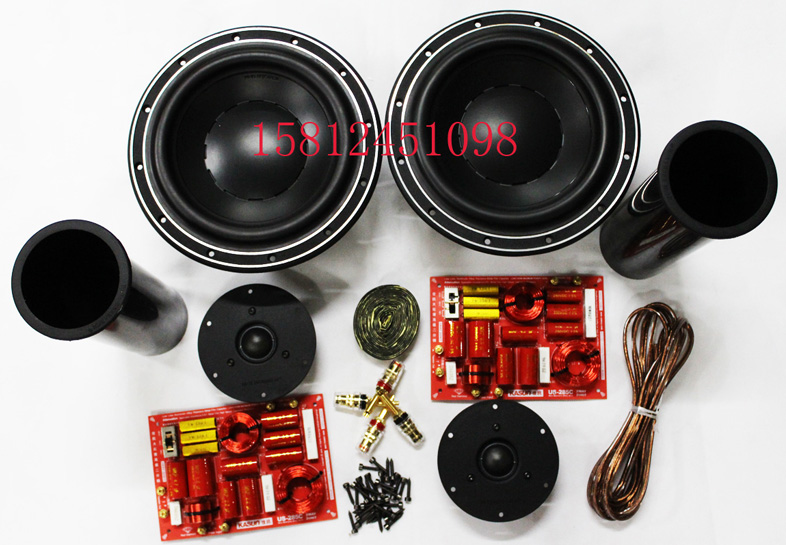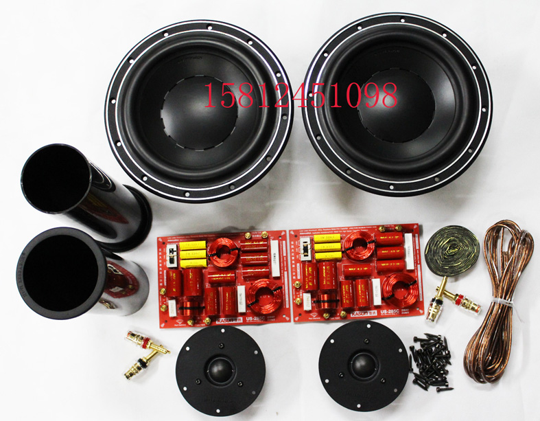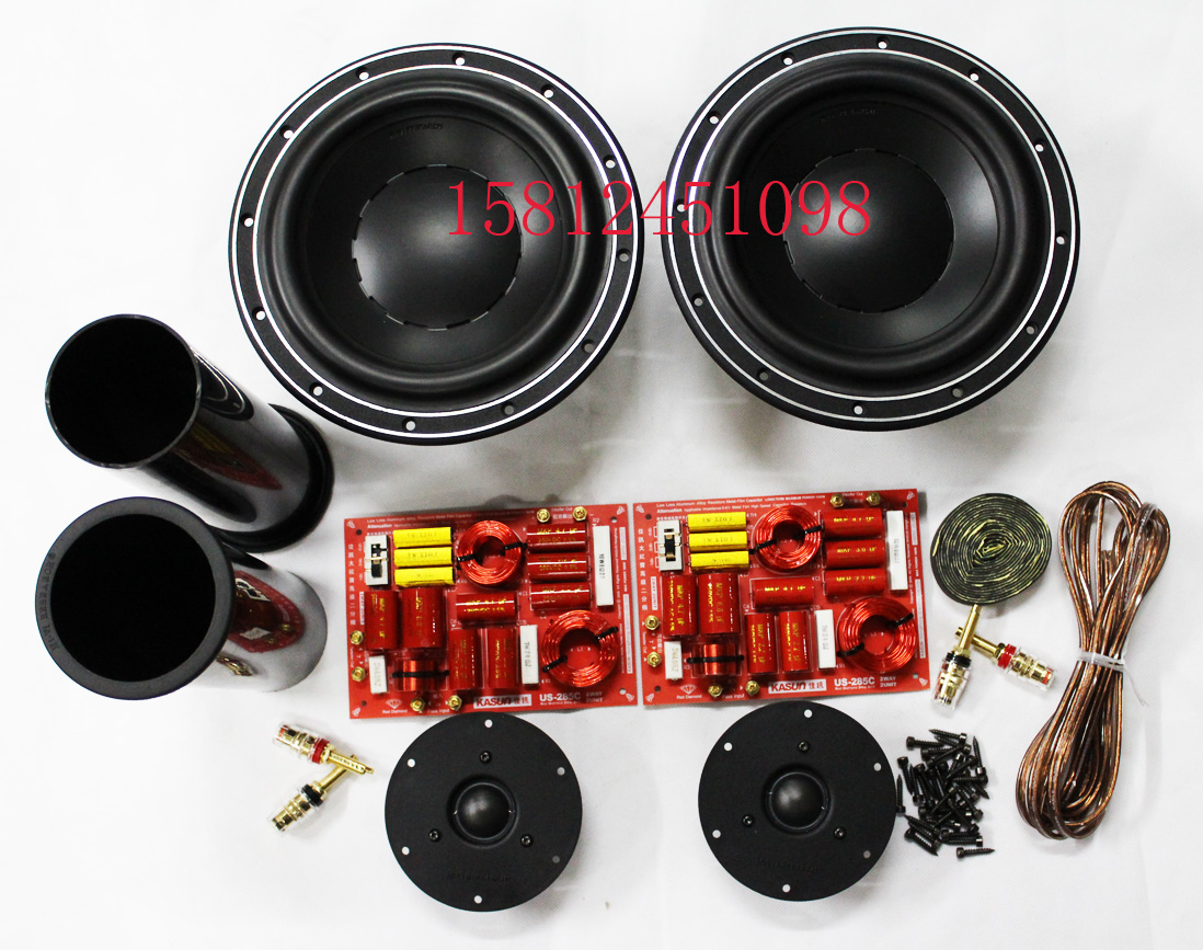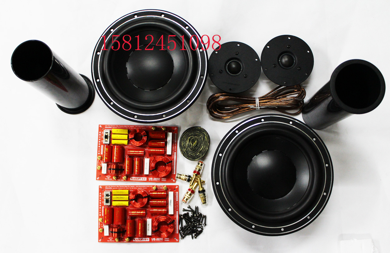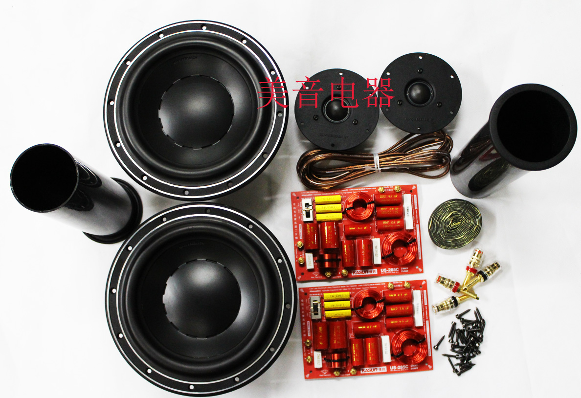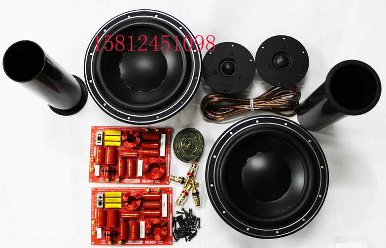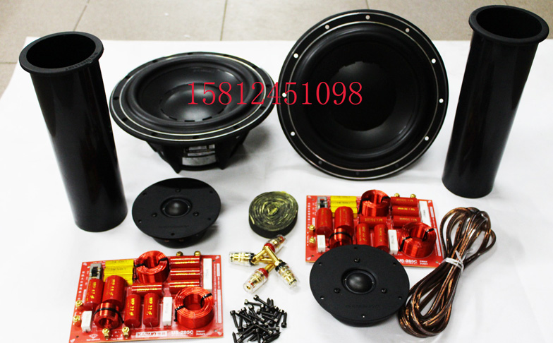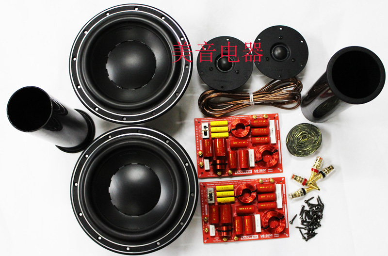 2 твитера HiVi Q1R; 2 бас-гитары Swans D8.8+; 2 оригинальных кроссовера Jiaxun US-285; 2 оригинальные 80* направляющие трубы; 4 медных терминала (2 красных и 2 черных); 3 метра внутренней проводки говорящего; 50 шестиугольных винтов; 4 метра герметичной прокладки. Один квадрат звукопоглощающего хлопка.