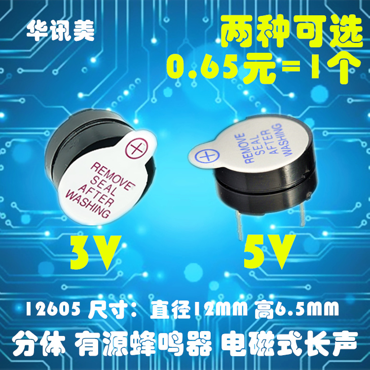 12605 Split 6,5 мм высотой 3 В 5V Active Buzzer Electromagnetic SOT Пластиковая герметичная трубка Длинный звук