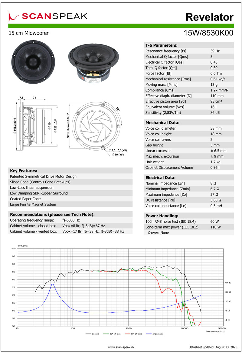 Дания-сканирование джентльмена сокровище 15 Вт/8530K00 Резиновый бассейн 5,5-дюймовый средний бас-рог