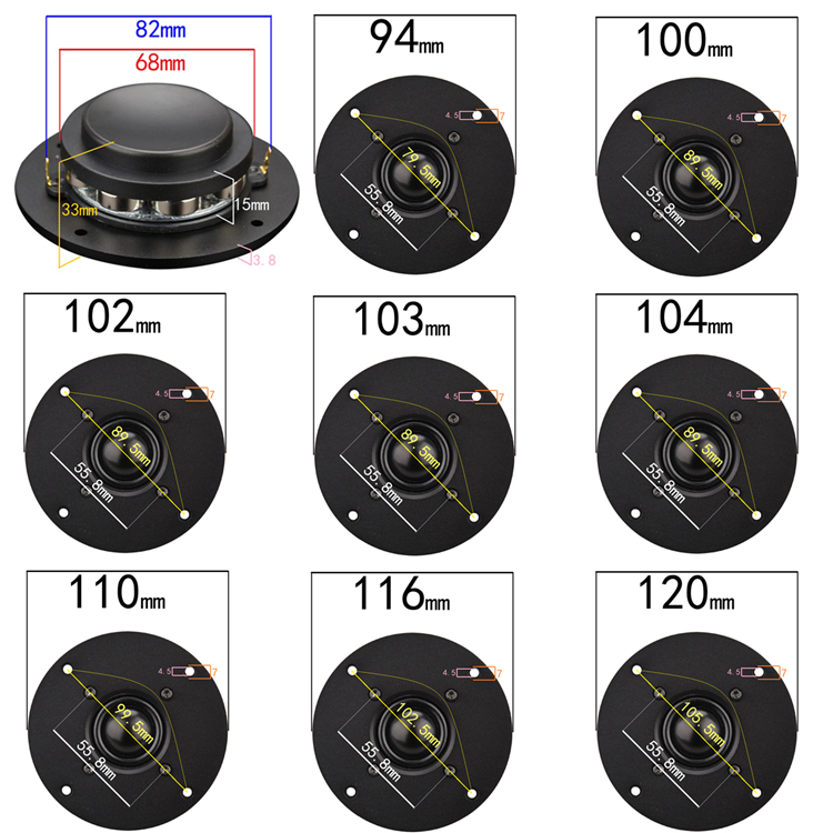Фиксированная звуковая катушка диагональное винт расстояние отверстия 55,8 мм;Вес нетто0.43KGПредметы