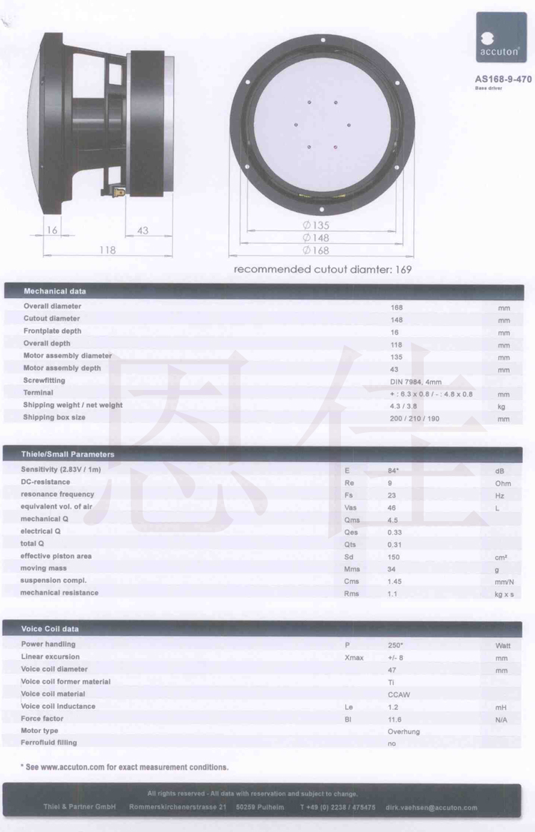 Германия Accuton AS168-9-470FG Cell Honeycomb Ding Ding Bass Одиночный блок