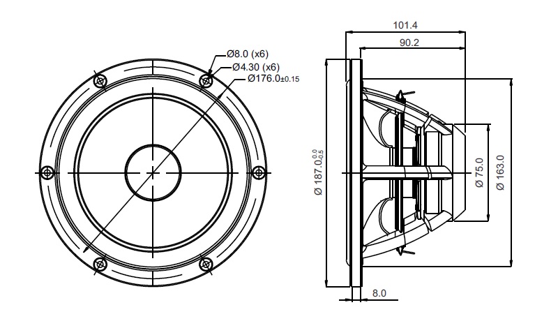 SB Acoustics Stubte Satori MW19P-8 Ом Композитный горшок с ручкой 7,5 дюйма 187 мм среднего блота