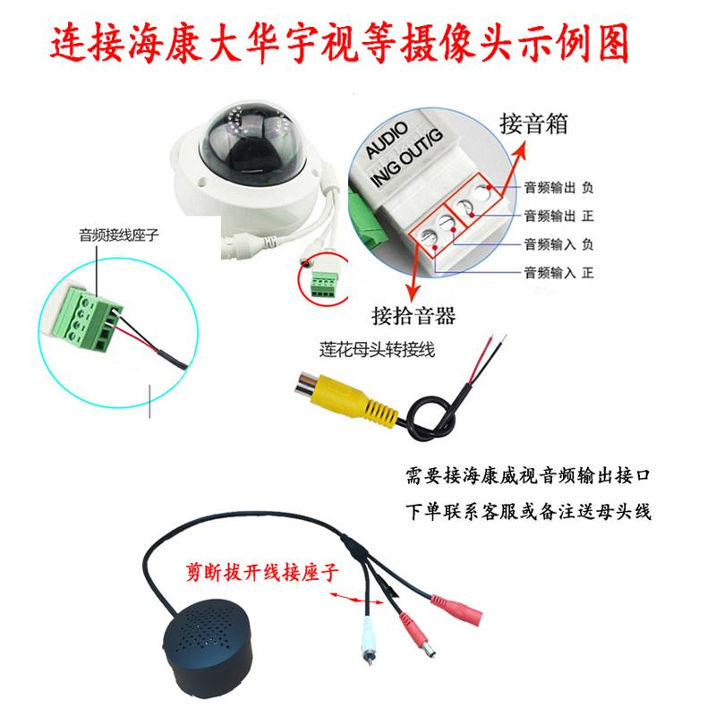 Необходимо подключиться к интерфейсу вывода видео и звука Hikvision. Пожалуйста, свяжитесь со службой поддержки клиентов при размещении заказа или сделайте пометку для отправки гнездового кабеля.