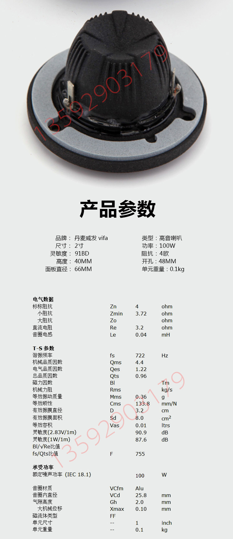 Дания 1-дюймовый рог в Дании 2-дюймовый алюминиевый пленка Требл NE25VTT-модифицированный автомобиль.