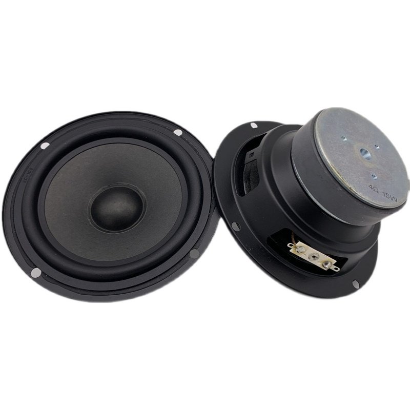 - Круглый динамик диаметром 5 дюймов, сопротивлением 4 Ом и мощностью 15 Вт.