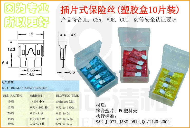 Вставьте предохранитель (10 кусков пластиковых коробок)