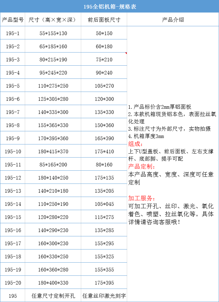 195Все алюминиевое шасси высокого уровня, сделайте панели на панели на панели по мере необходимости(Нестандартный индивидуальный размер)