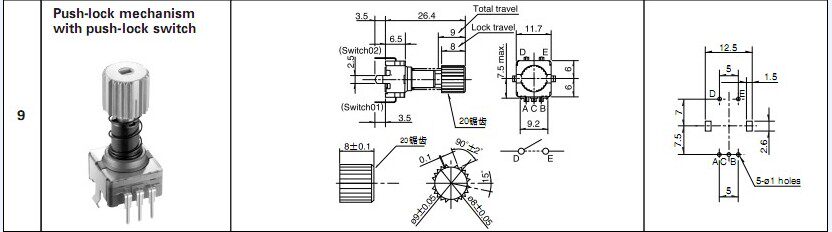 Оригинальный японский пошаговый 30-точечный кодирующий переключатель ALPS EC11E152T409 с самоблокирующейся кнопкой