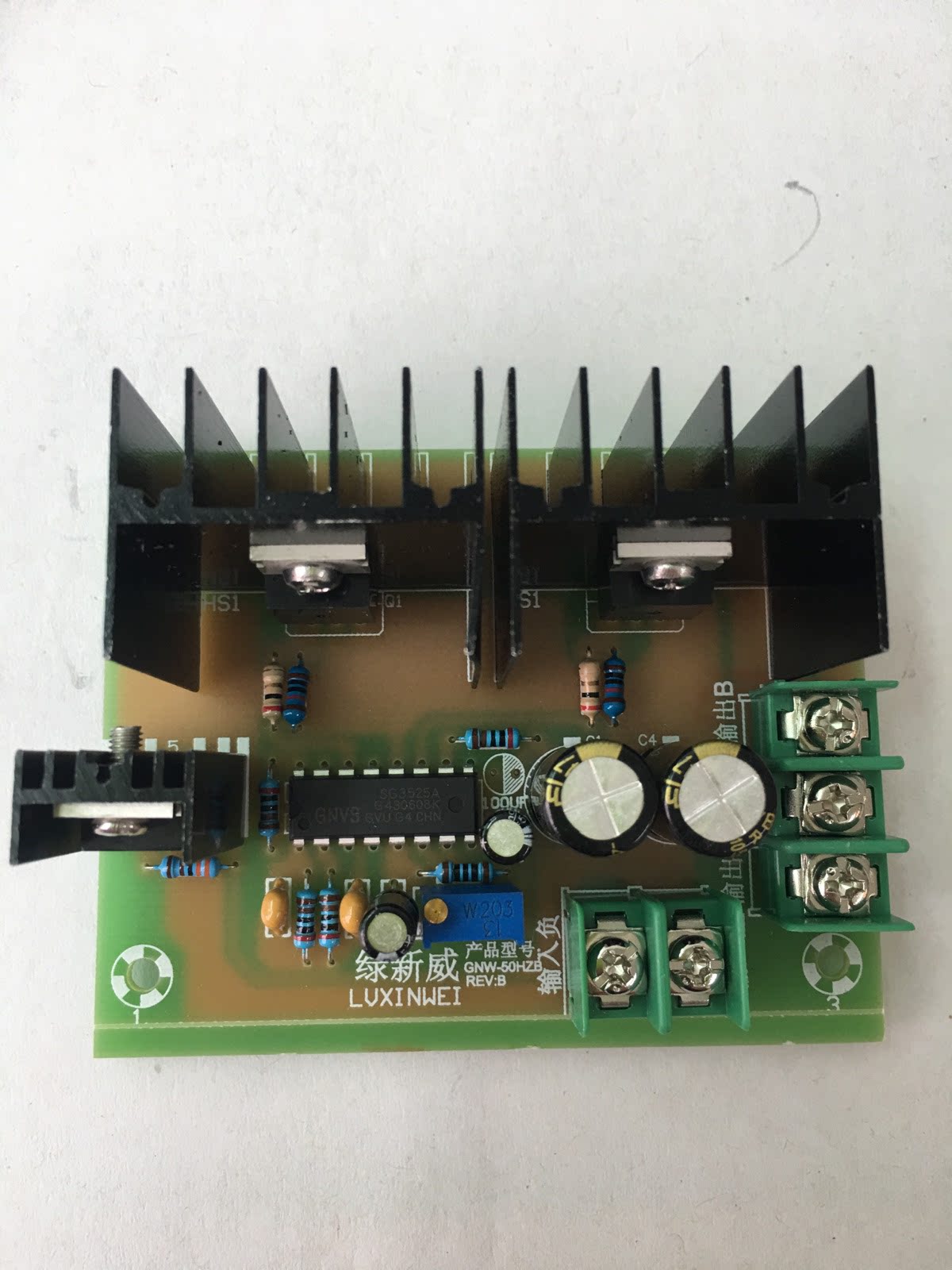 4. Выход этой инверторной пластины не подходит для нагрузки двигателя вентилятора, потому что вентилятор квадратной волны, по -видимому, будет нагреть двигатель вентилятора и шум.Низкая скорость и другие явления.Можно использовать струнный двигатель фонарика.