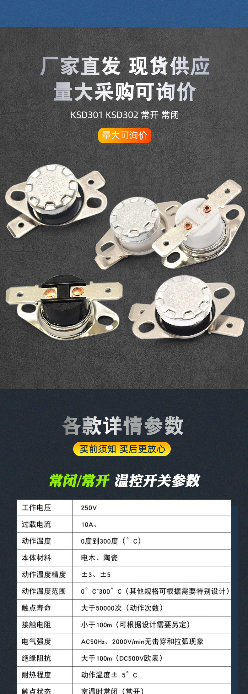 KSD301 302 регулятор температуры открыт 𫔭выкл. регулятор температуры нормально разомкнут 𫔭нормально закрыт керамика 85-180 градусов 250В/10А 16А