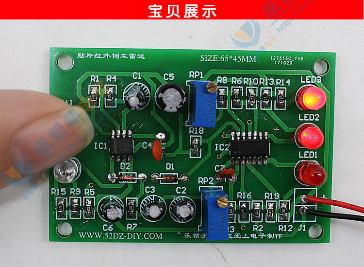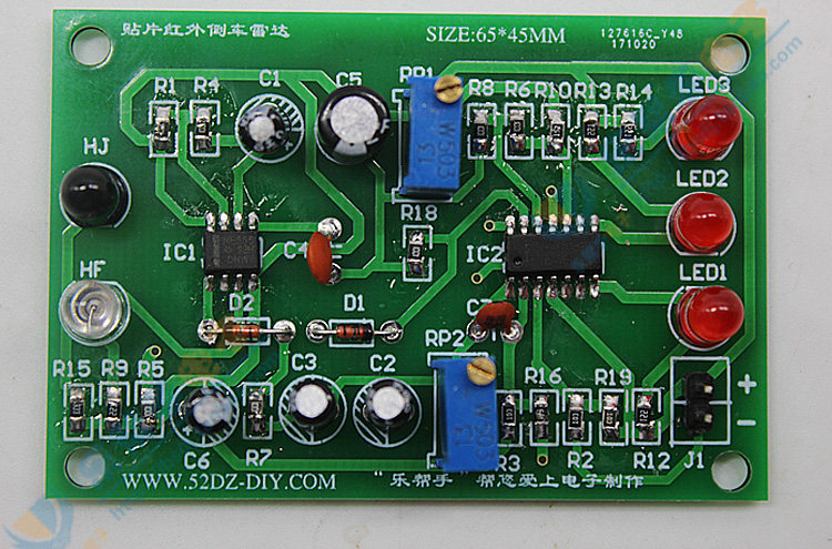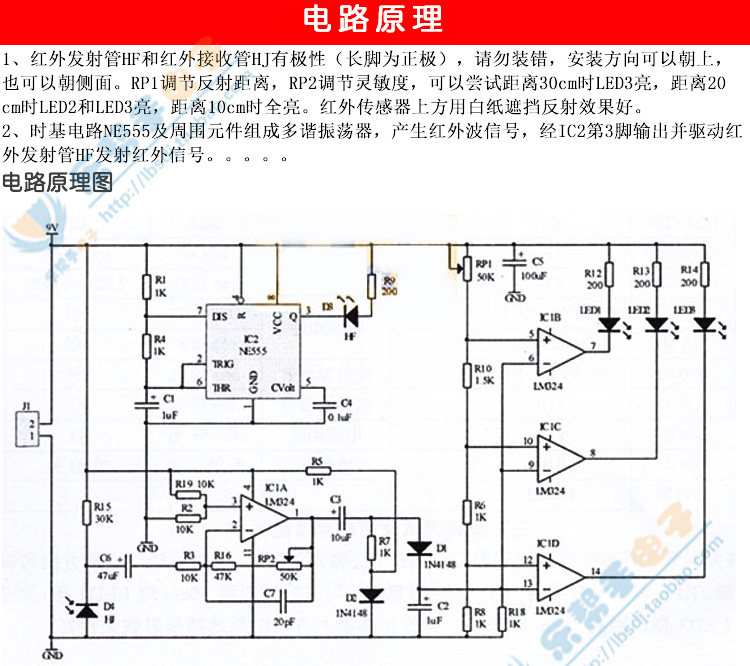 1. Инфракрасная трансмиссионная трубка HF и инфракрасная приемная трубка HJ являются полярными (длинные ноги являются положительными). Не устанавливайте ее неправильно. Направление установки может быть направлено на вверх или обращаться в сторону.RP1 регулирует расстояние отражения, RP2 регулирует чувствительность, вы можете попробовать светодиодный 3 яркий, когда расстояние составляет 30 см, светодиоды2 и светодиод 3 яркие, когда расстояние составляет 20 см, а расстояние составляет 10 см.Инфракрасный датчик использует белую бумагу, чтобы покрыть эффект отражения.