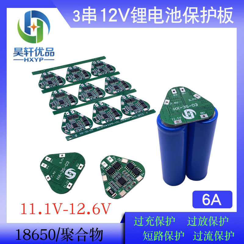 3 серия 12V18650 Плата по защите литийной батареи 8A Перегрузка 11,1 В Три -юань литий 12,6 В Зарядка и короткий заряд