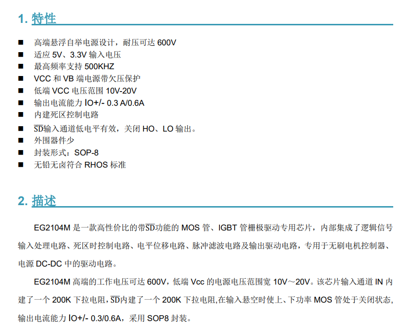 EG2104M с функцией SD -функции MOS Tube Cip Captible IR2104