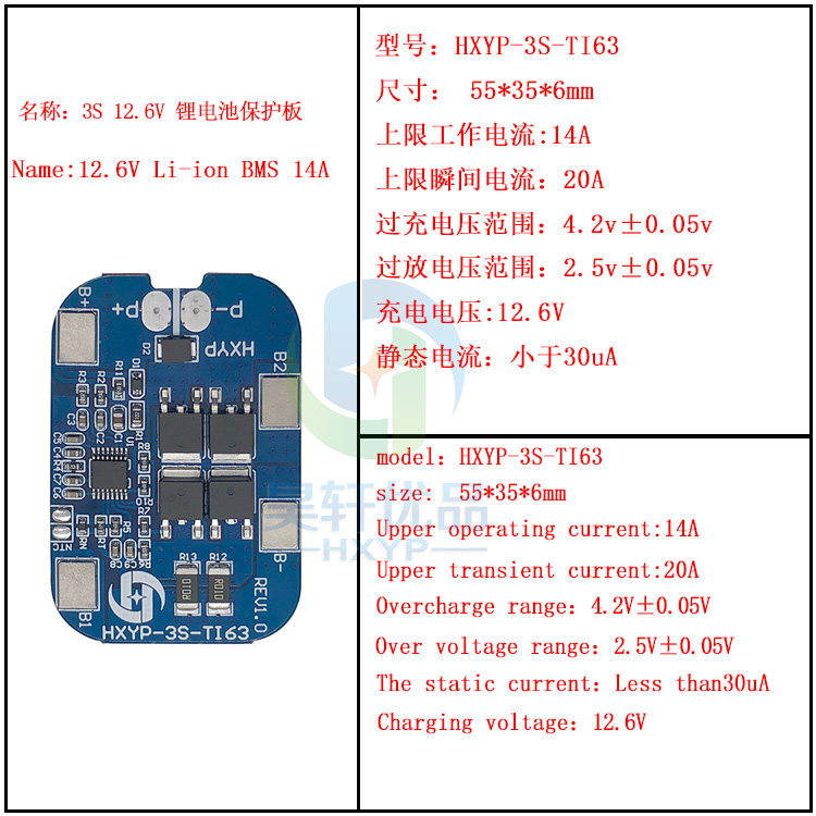 3 Строки 18650 Защитные пластины аккумулятора были заполнены защитной платой короткой замыкания 12.6 В 14a Защитная плата