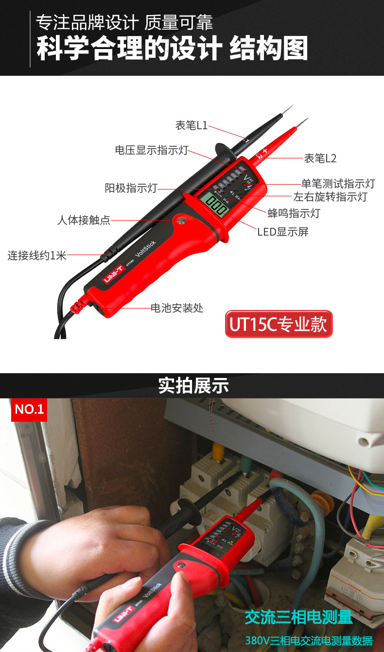 Youlide Водонепроницаемый нулевой огневой линию электрический разрыв и непрерывная тестовая таблица фазы таблицы последовательности UT15C