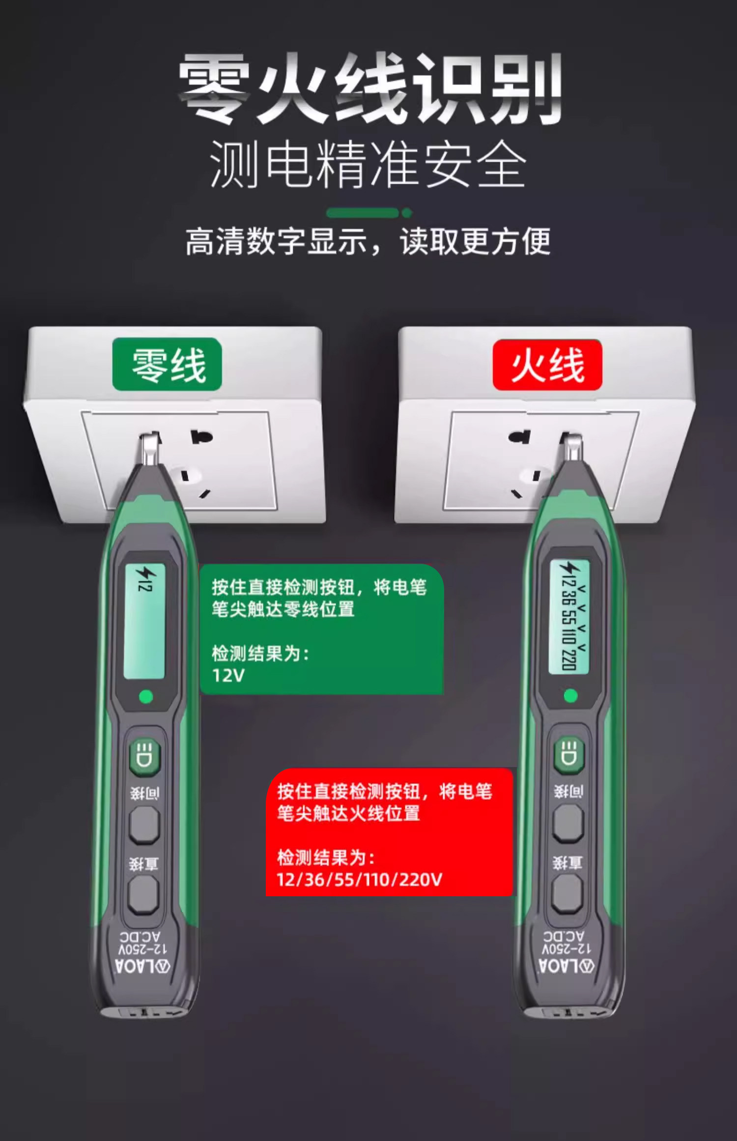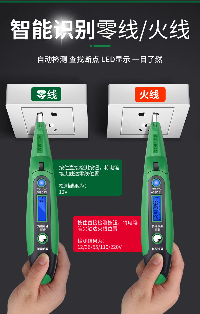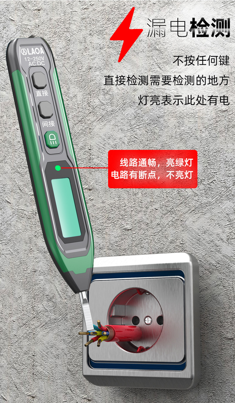 老A Электрическая испытательная ручка, специальный интеллектуальный цифровой дисплей для электрика, электрическая испытательная ручка, проверка напряжения, тестовая ручка включения-выключения, нулевой провод под напряжением, 12-250 В