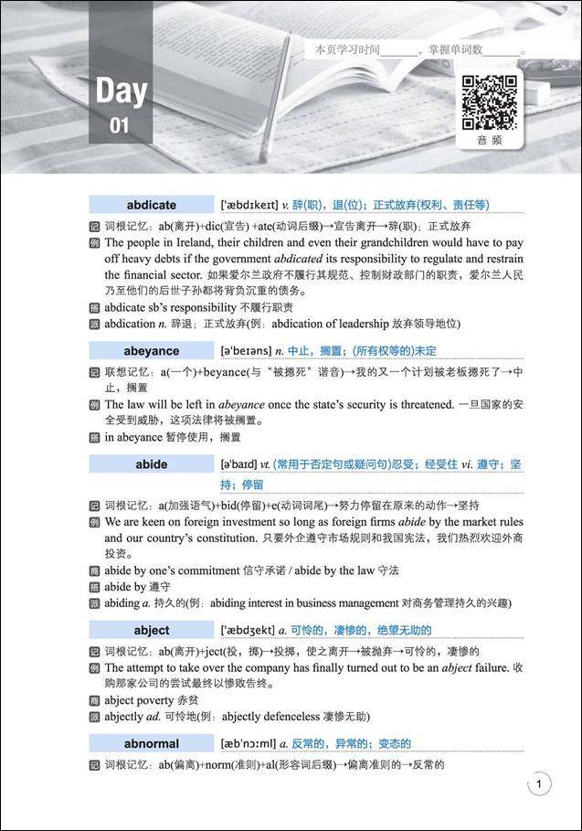 Чтобы облегчить изучение кандидатов, эта книга специально организовала 30-дневный план обучения и добавила меню мнемонического меню в заголовке каждой страницы, чтобы облегчить кандидатам подсчитать время обучения и количество слов, которые они освоит на каждой странице, контролировали прогресс в обучении и повысили эффективность обучения, чтобы достичь цели быстрого мастера-овладения в течение 30 дней.