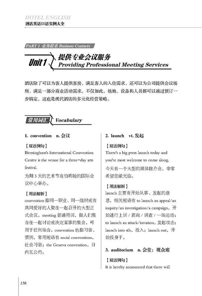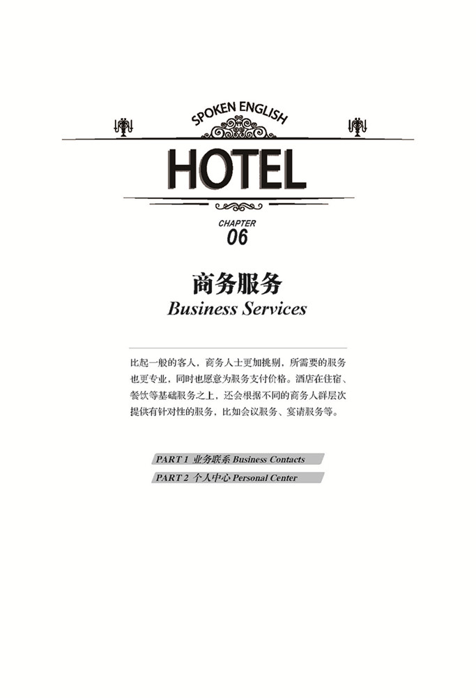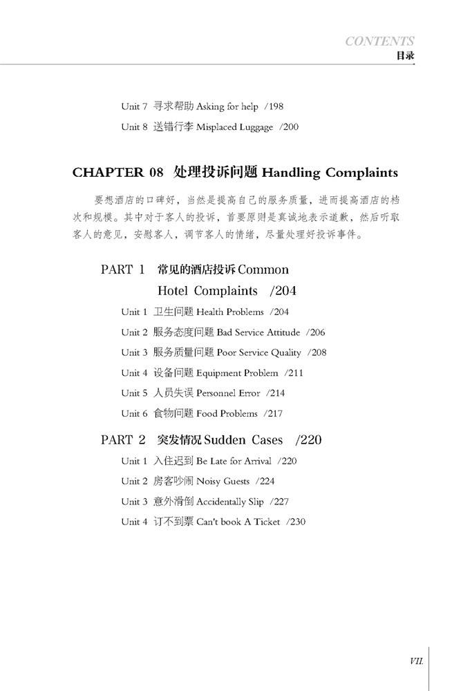Эта книга в основном представляет сцены диалога, с которыми практикующие гостиницы часто сталкиваются в полном ассортименте гостиничных услуг, и помогает читателям понять различные примеры с помощью китайско-английского сравнения.Всего в книге есть 8 главы, в основном включающие три части: * Часть представляет базовую ситуацию в отеле и содержание обслуживания на стойке регистрации, вторая часть вводит основное содержание обслуживания различных отделов (комнаты, телефон, общественное питание, развлечения, бизнес), а третья часть вводит особые требования гостей, чрезвычайных ситуаций и общих сценариев для обращения с жалобами.