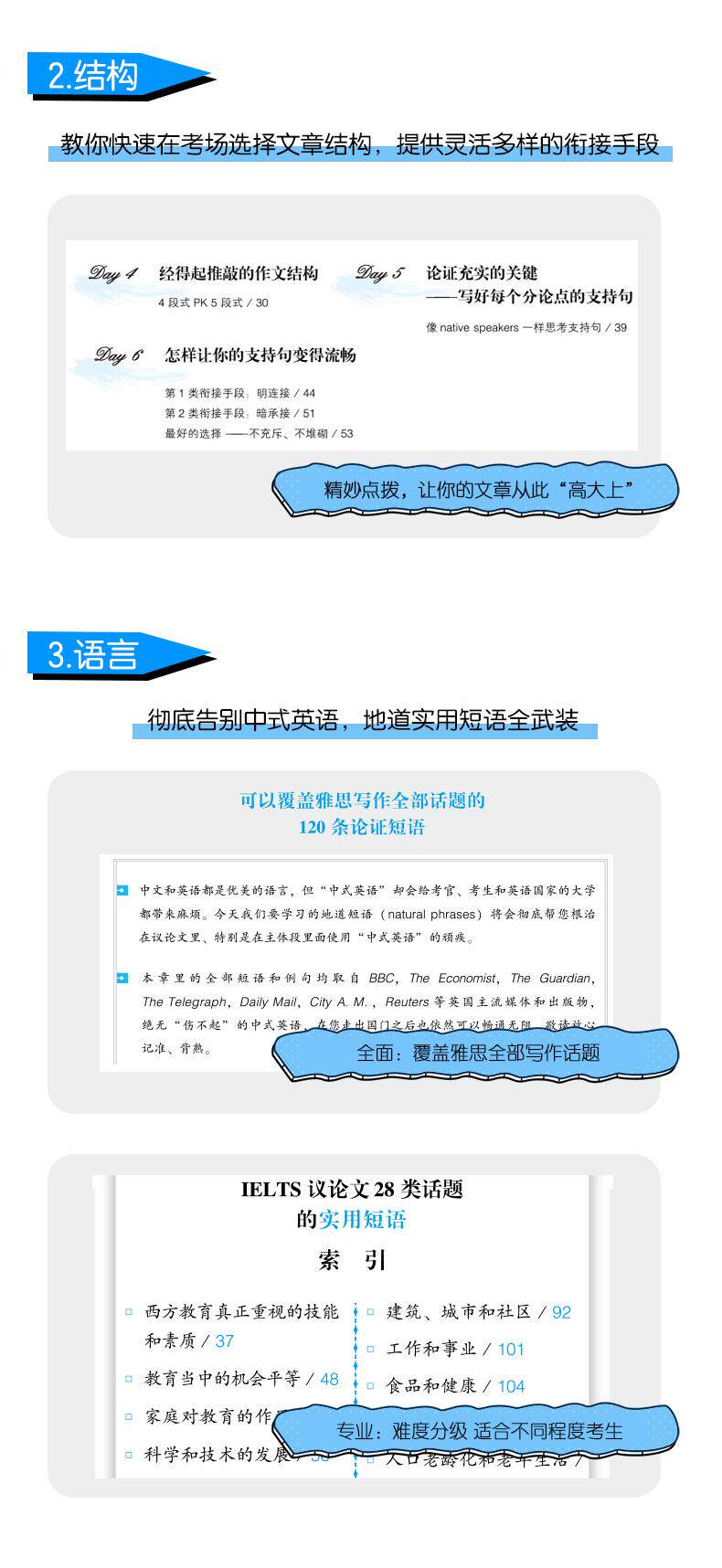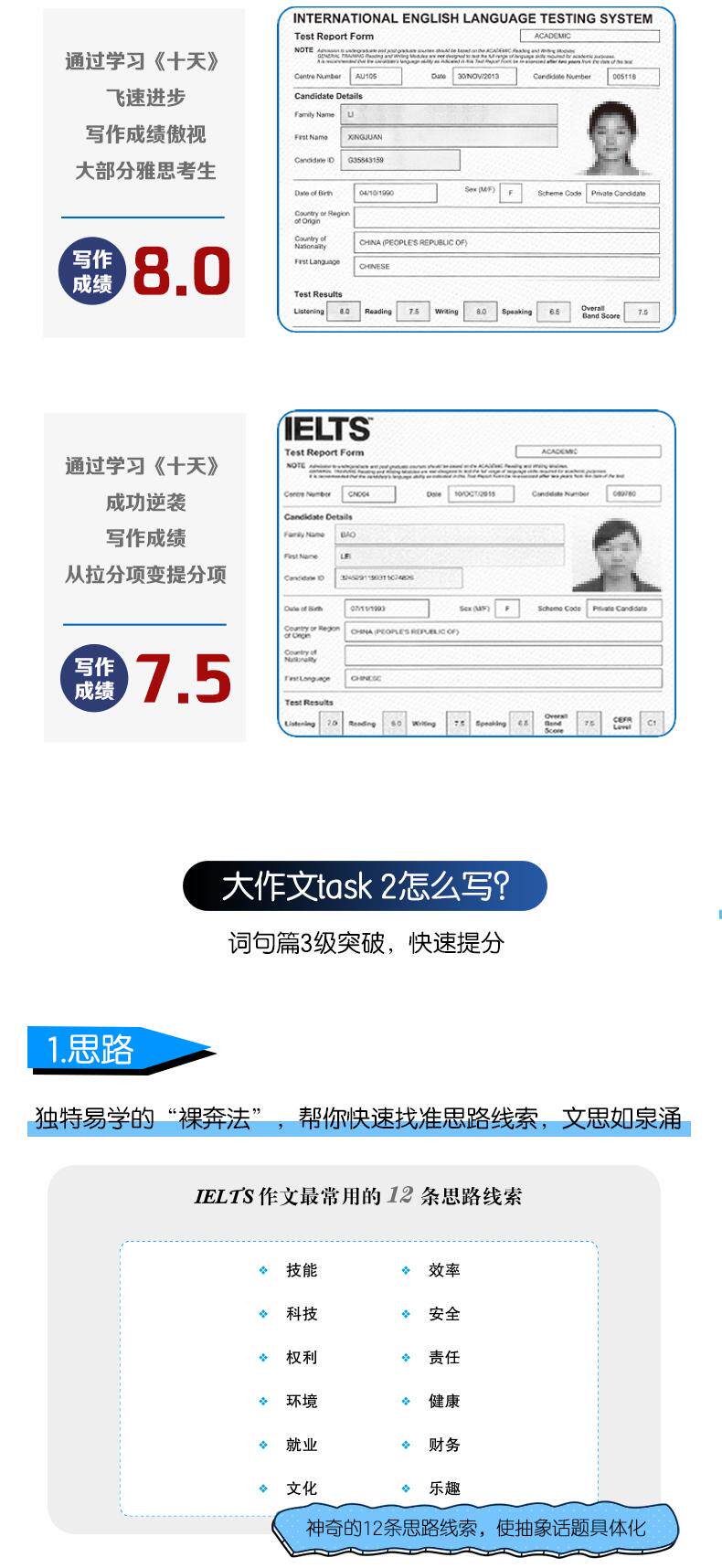 Эта книга является шедевром учителя Шэнь Сяою (Пэт), эксперта по английскому тестированию в учебе за границей.Опубликовано книгой, тесно в сочетании с издательством Кембриджского университета“Меч 14”В нем творчески обобщены все навыки сдачи теста, необходимые китайским кандидатам, чтобы преодолеть трудности в написании IELTS, а также даны подробные объяснения большого количества языковых вопросов на подлинном английском языке. Все примеры в книге взяты из британских и американских публикаций, опубликованных за последние два года, а также превосходных официальных примеров в Jian 8 ~ Jian 14 и «Официальном руководстве Cambridge IELTS».