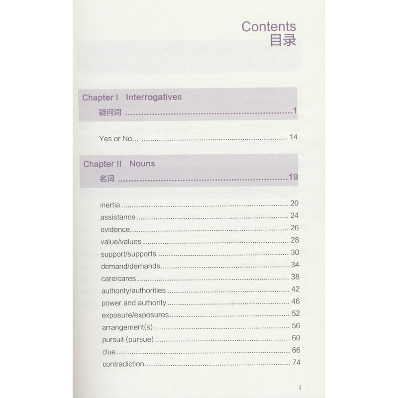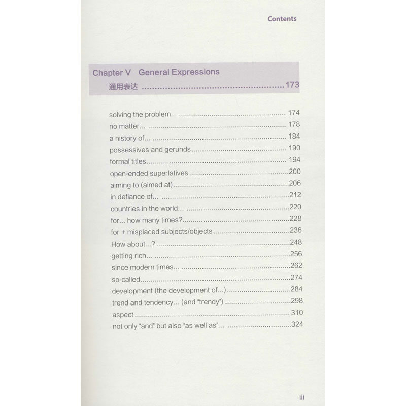 Несколько глав, таких как существительное множество, общие существительные, глаголы, прилагательные и наречия, разделены на слова.Глава 6"Частые выражения неправильного использования"Он содержит много выражений странных и недоразумений или злоупотребления словами.Глава 7"Разговорный английский вопрос"Резюме больше подходит для разговора, но часто не злоупотребляет письменным языком.